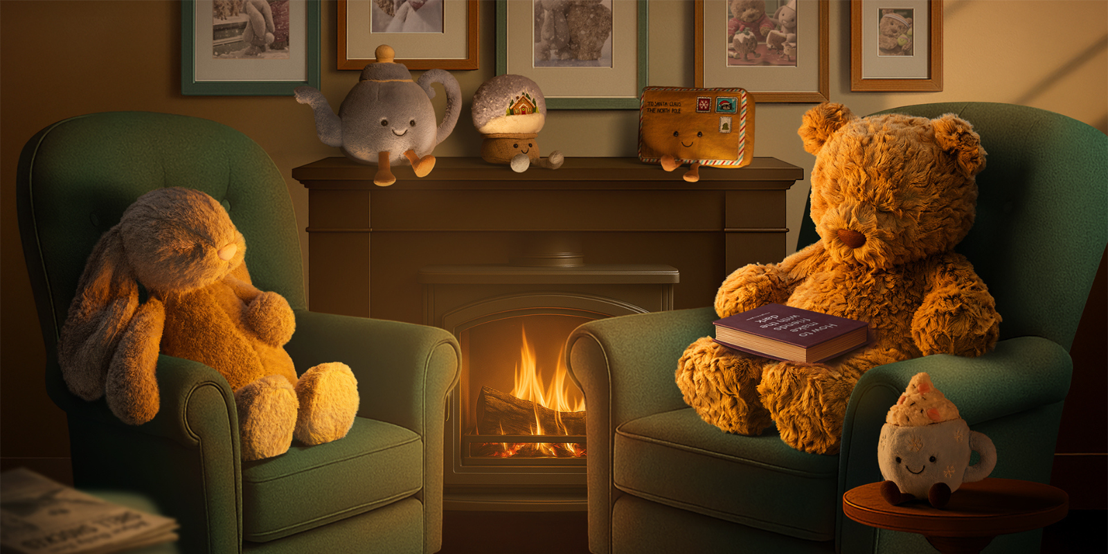 Charming plush pals for cuddles, naps, and fireside storytelling.