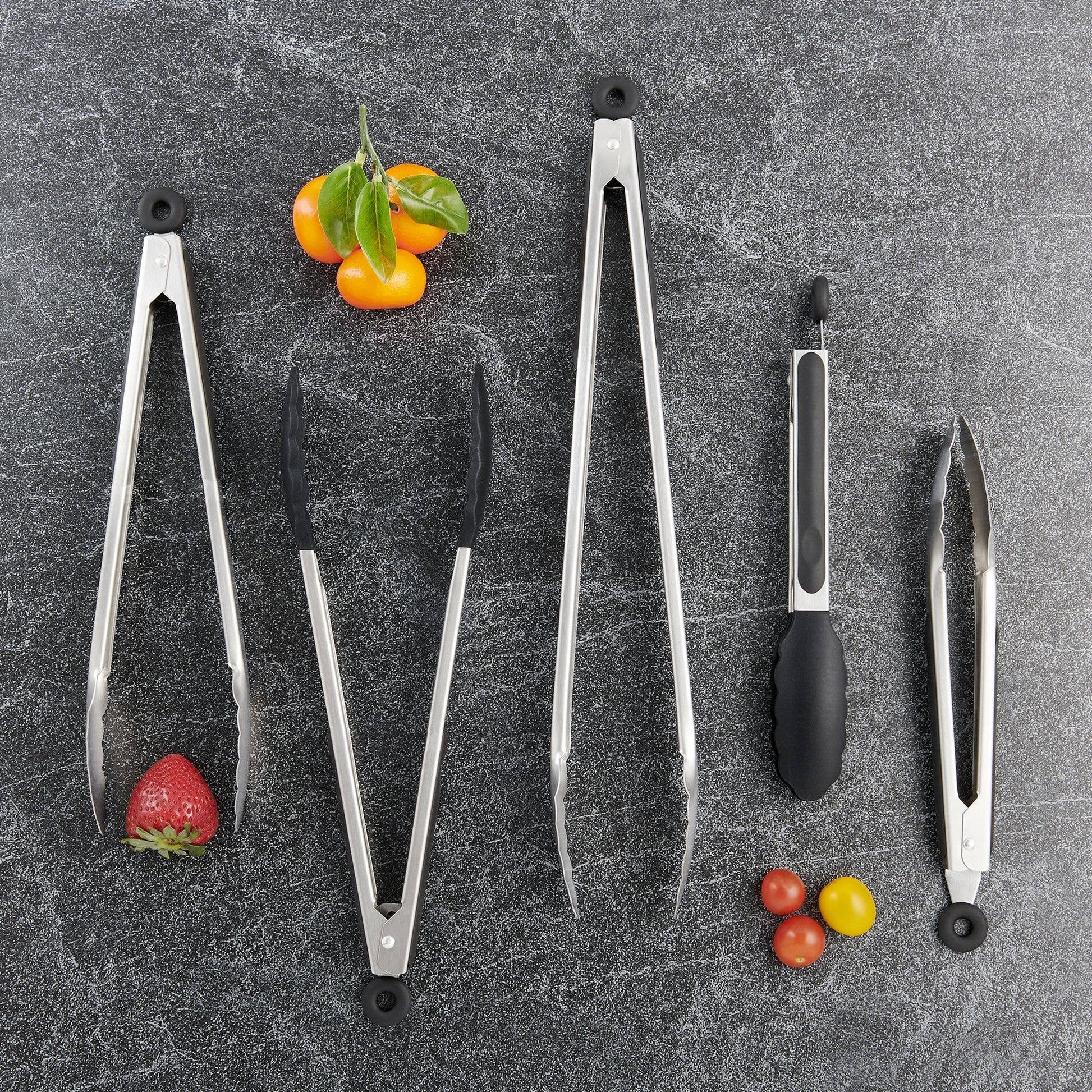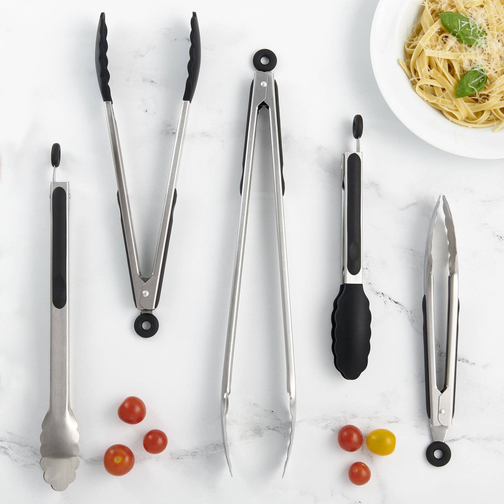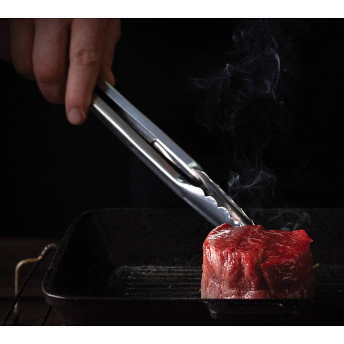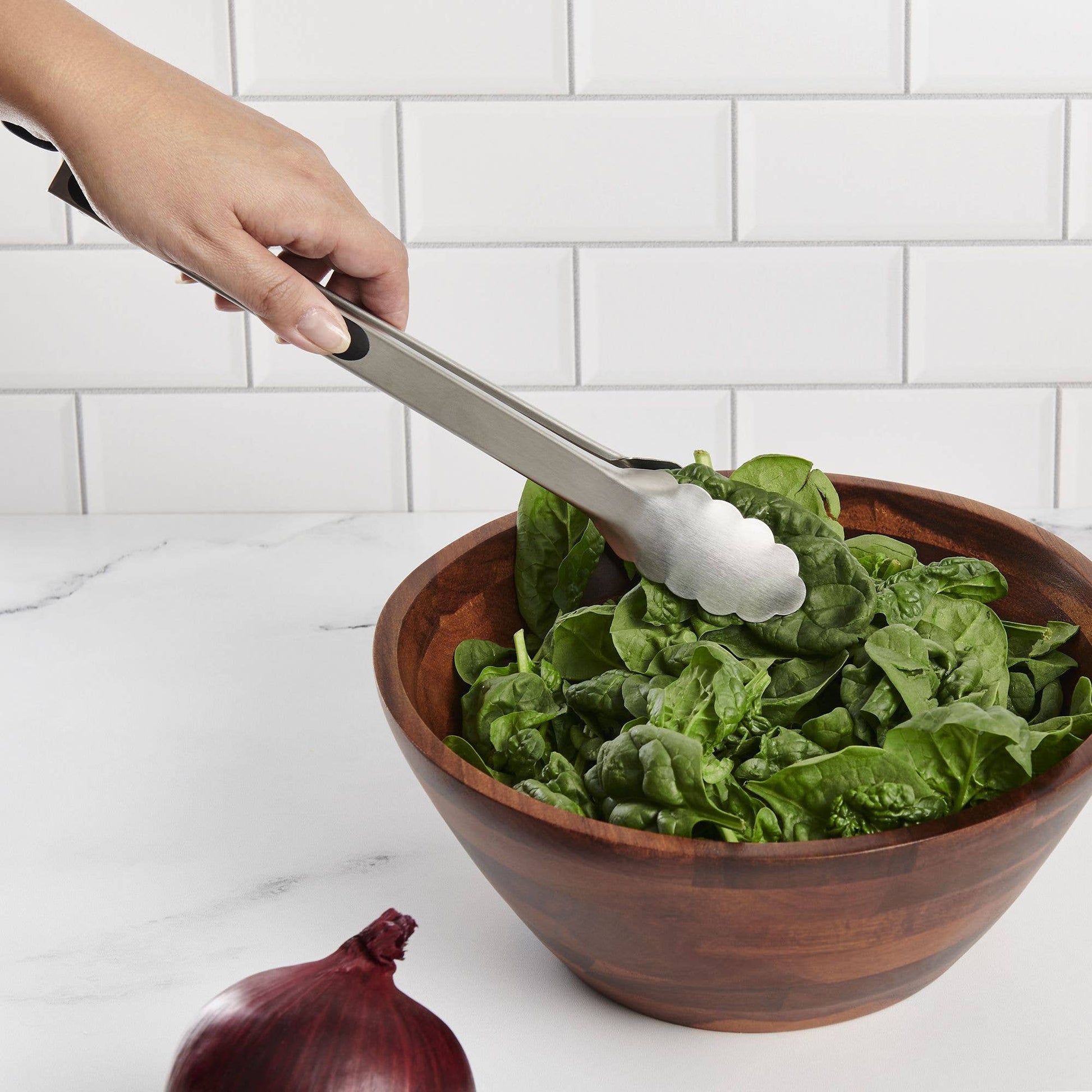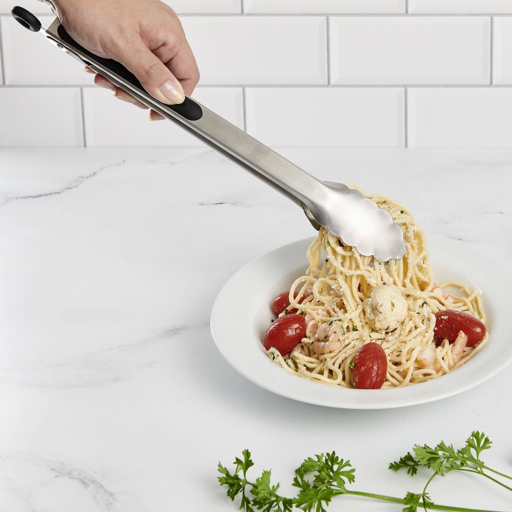 Cutlery-Pro's Locking Tongs securely grip, lift, turn, and drain food for mess-free serving.