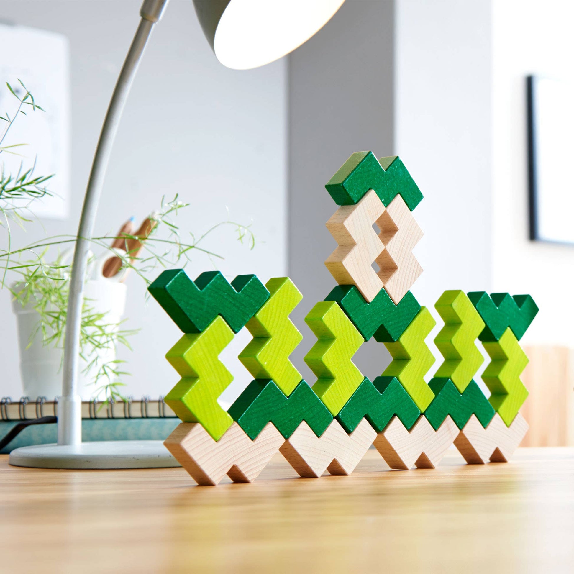 Viridis wooden blocks make it easy for little builders 3 and up to build and combine in countless ways. The light green, dark green and natural colored blocks can be used to make amazing designs and structures. Endless fun!
