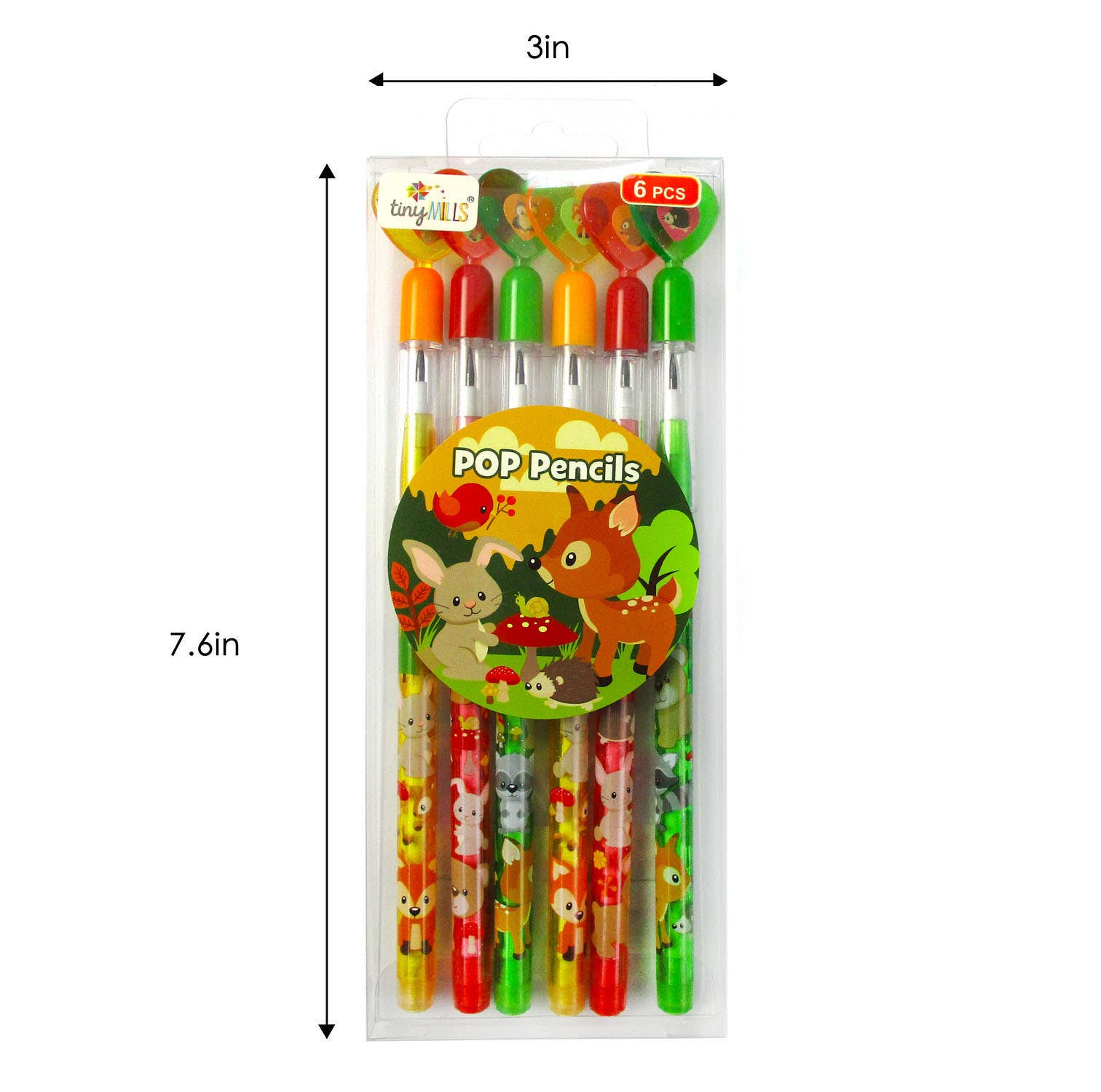 This set of 6 pencils features adorable woodland animal designs and eliminates the need for sharpening.