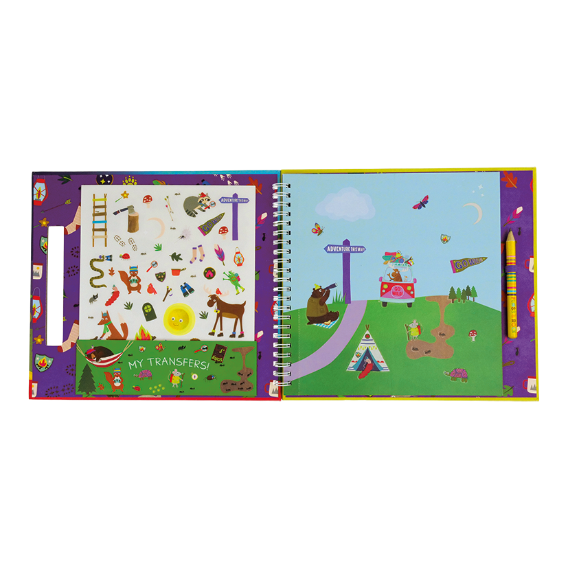 This Adventure Transfer Fun comes with over 150 amazing Adventure themed transfers, 6 colourful scenes to place them onto, 6 plain pages for freestyle doodling and a pencil.