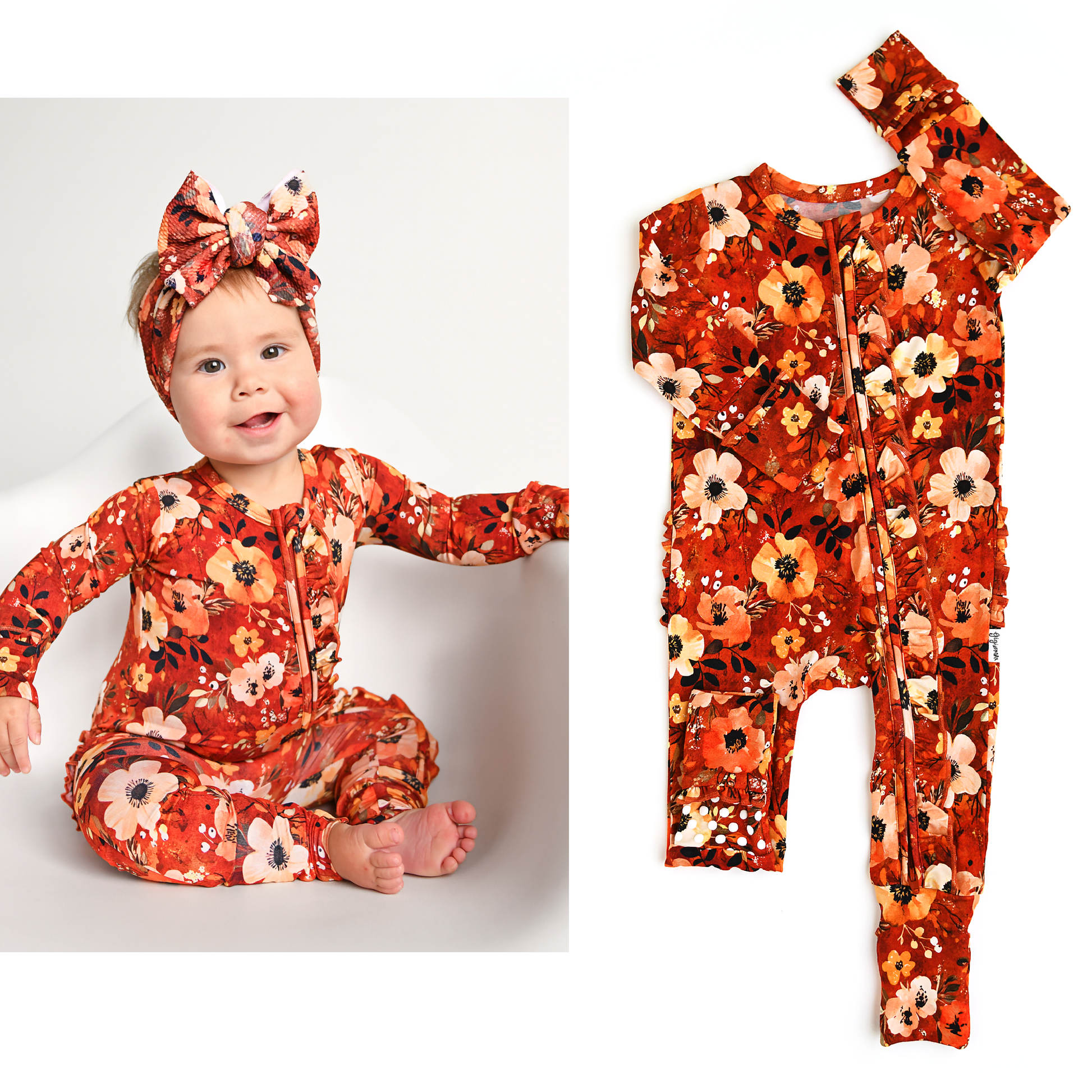 Featuring a zipper that runs from the top of the outfit to the ankle. Our favorite part about this outfit is that the zipper is 2 way! Making for super easy diaper changes without having to remove the whole outfit.