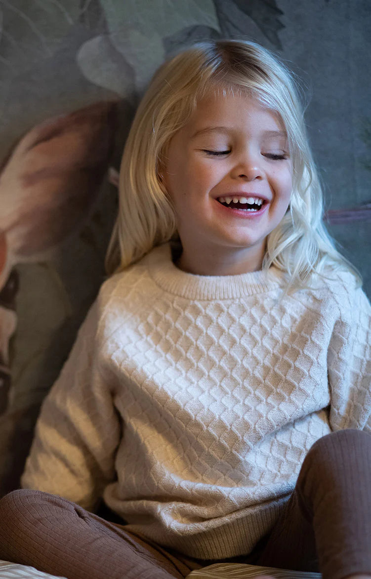 The pullover has a double-knit ribbing at the neckline and ribbing at the bottom and at the sleeve opening. The fit has a comfortable and trendy look.