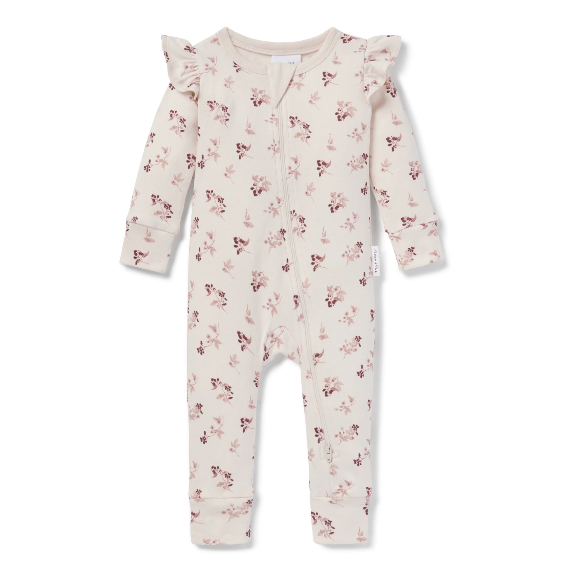 Our Berry Floral zip romper will keep baby cozy and warm throughout the cooler days and features the cutest flutters on the sleeves.