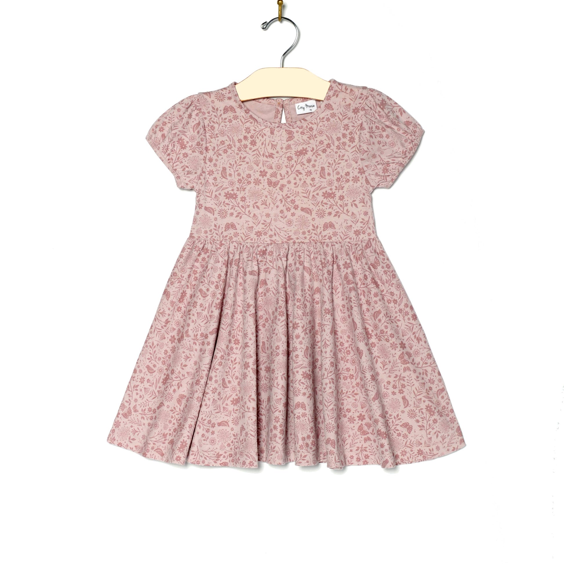In our 100% cotton combed jersey and with a wide skirt perfect for twirling, our sweet birds and butterflies print will bring the cheer for all the adventures to come.