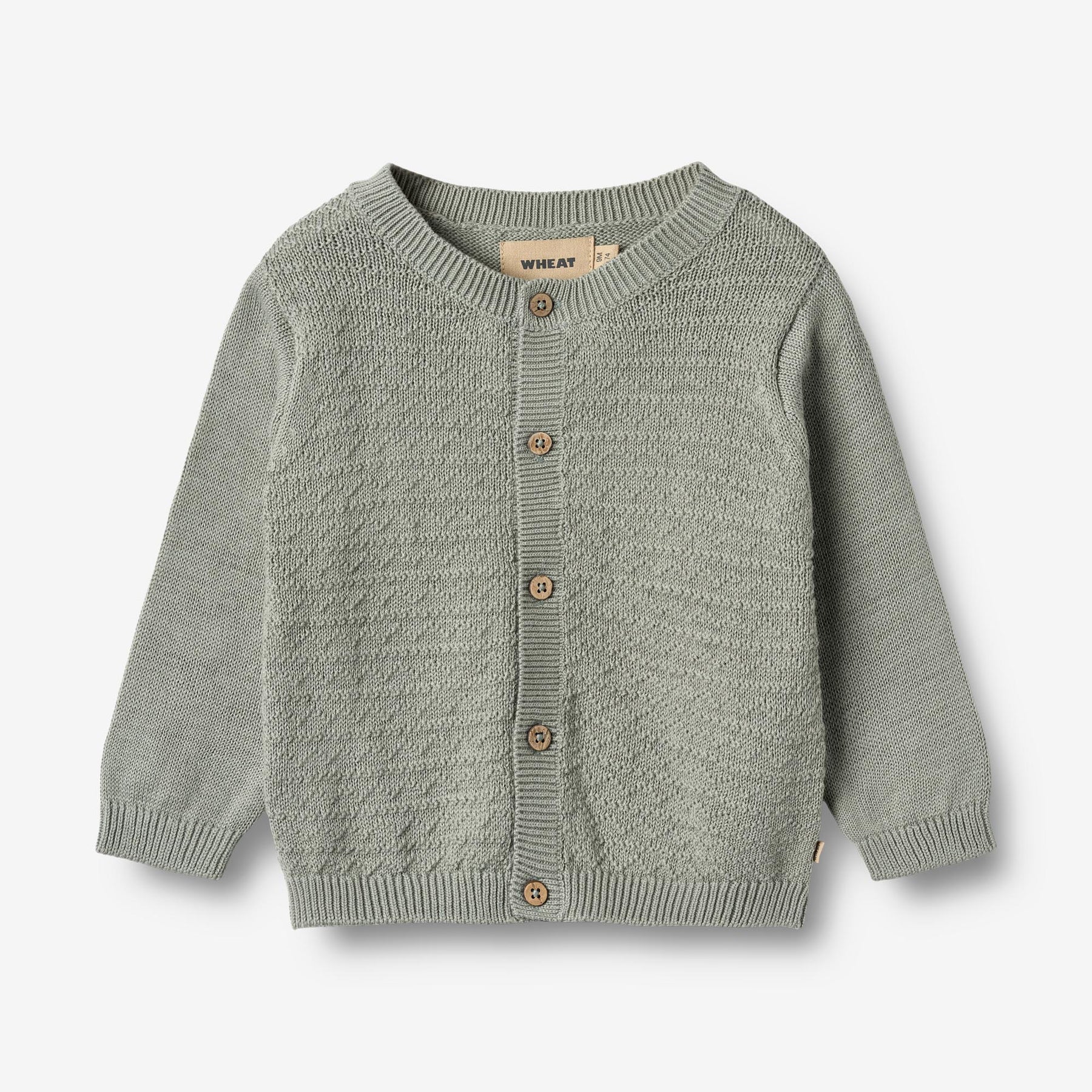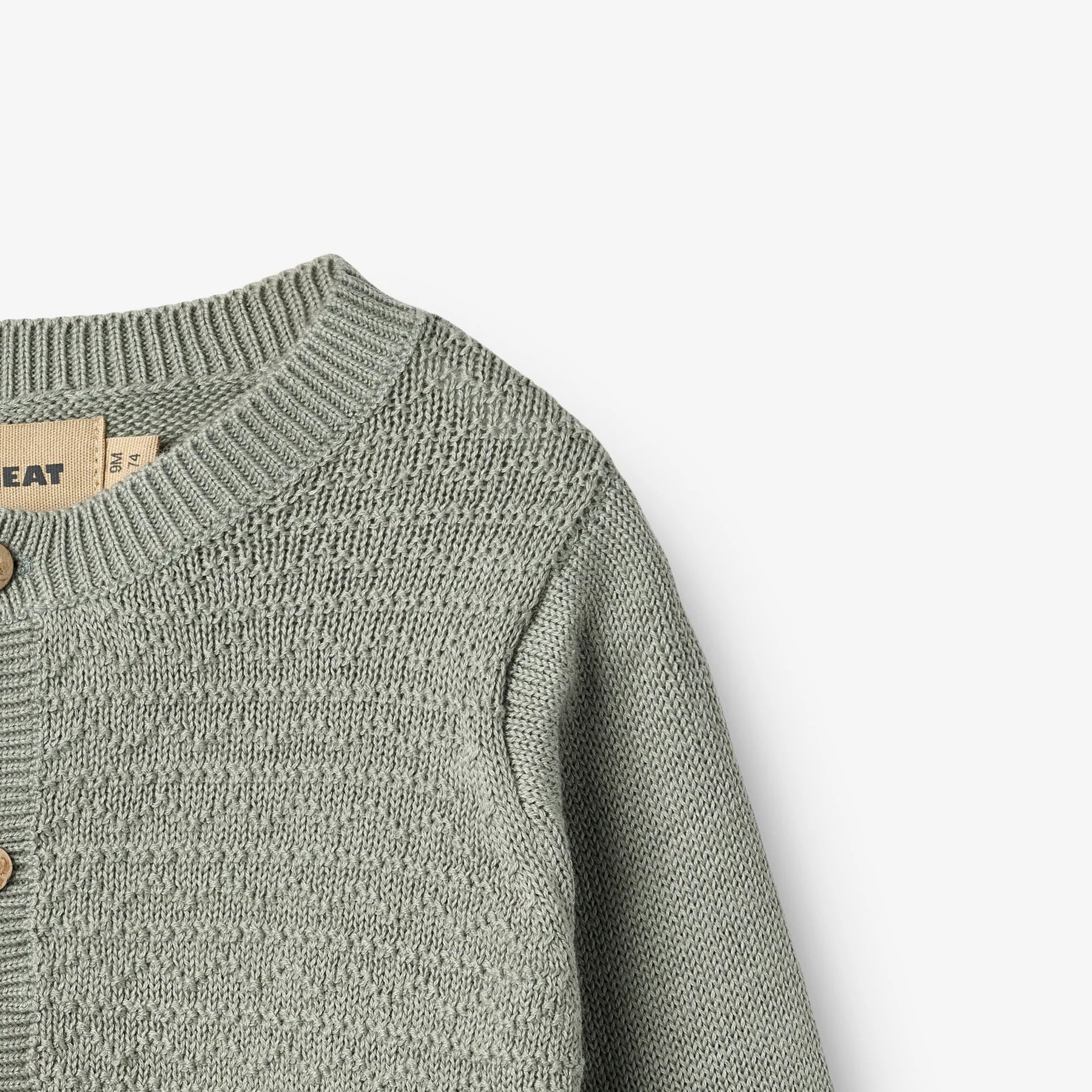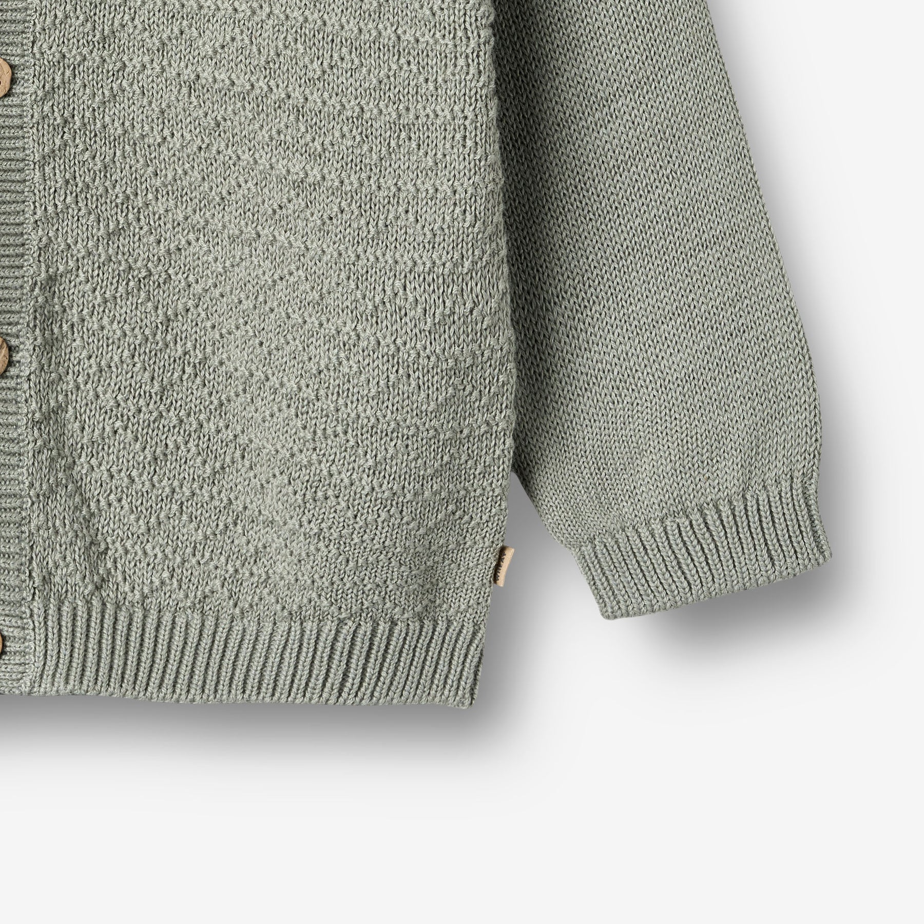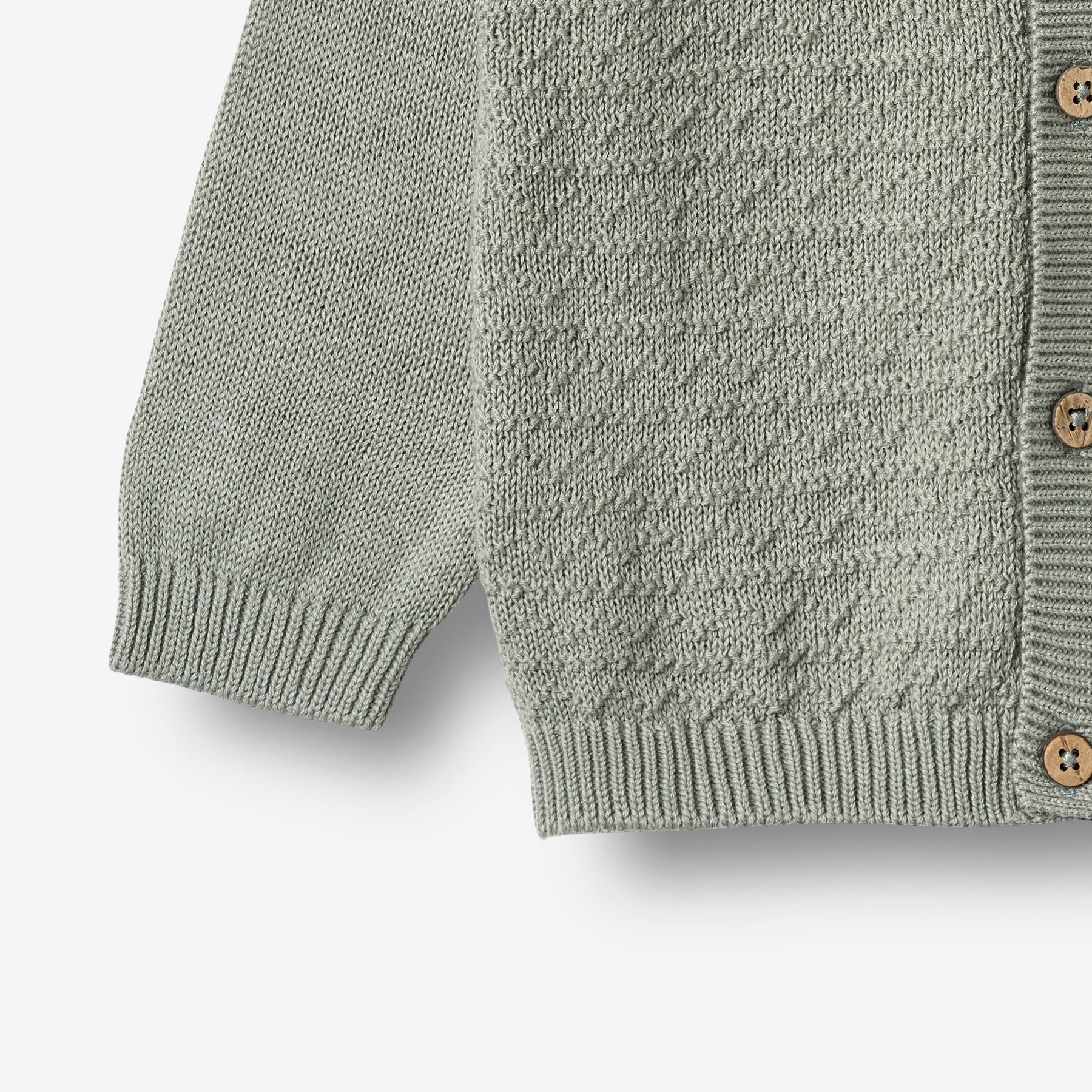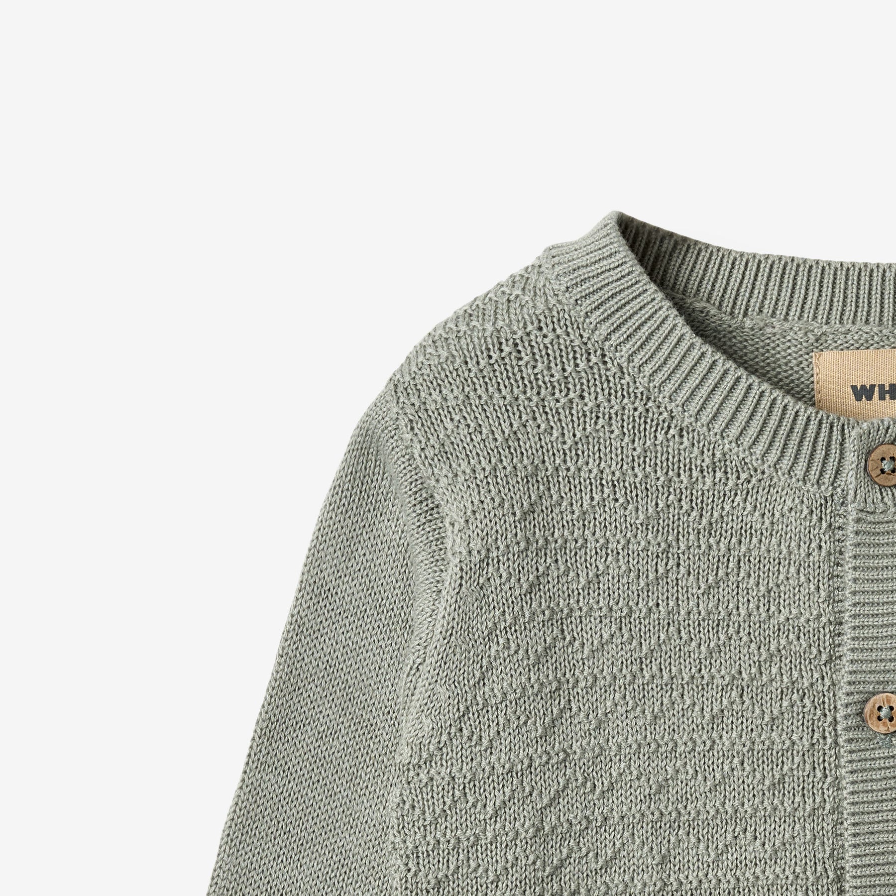 Long-sleeved knit cardigan in soft organic cotton for babies.