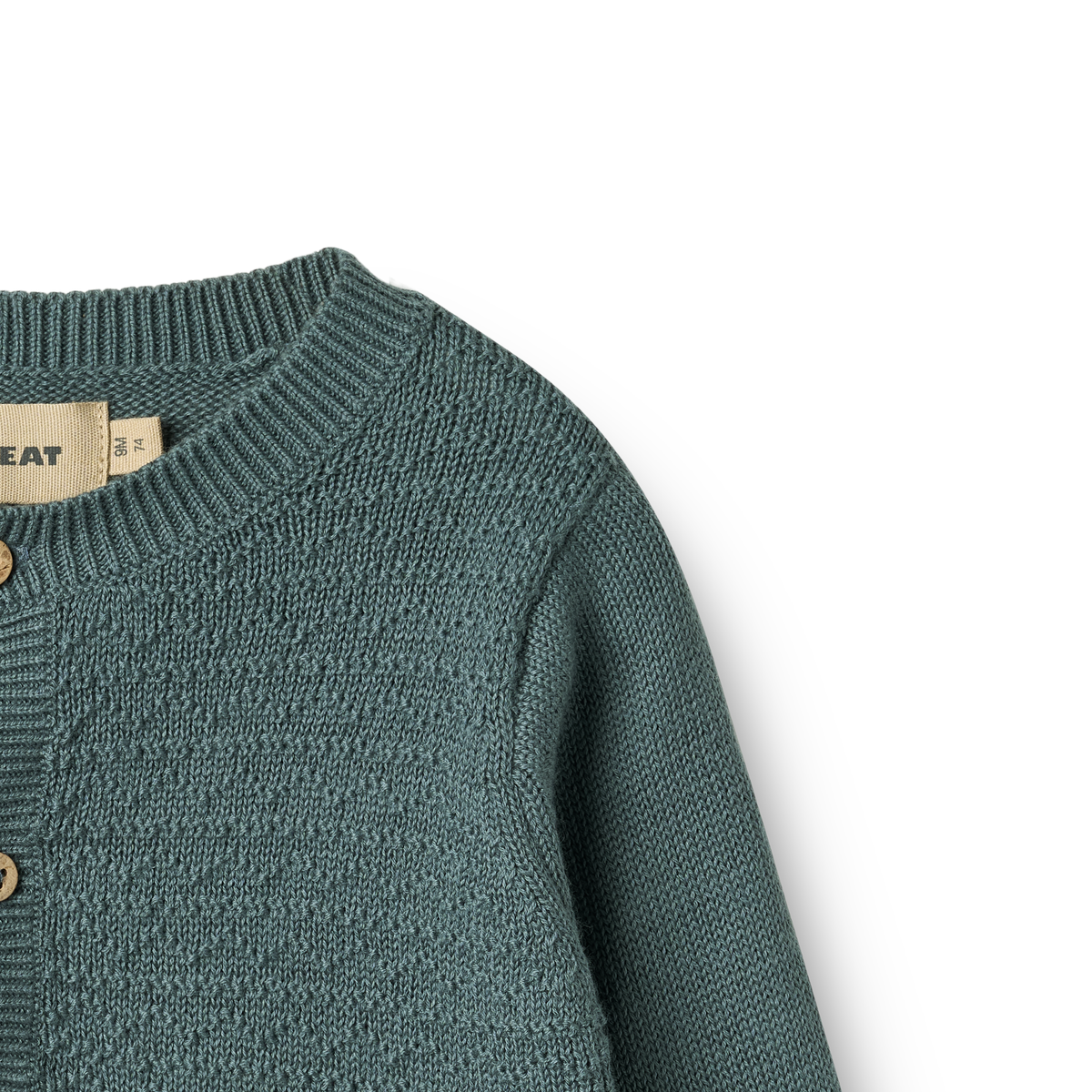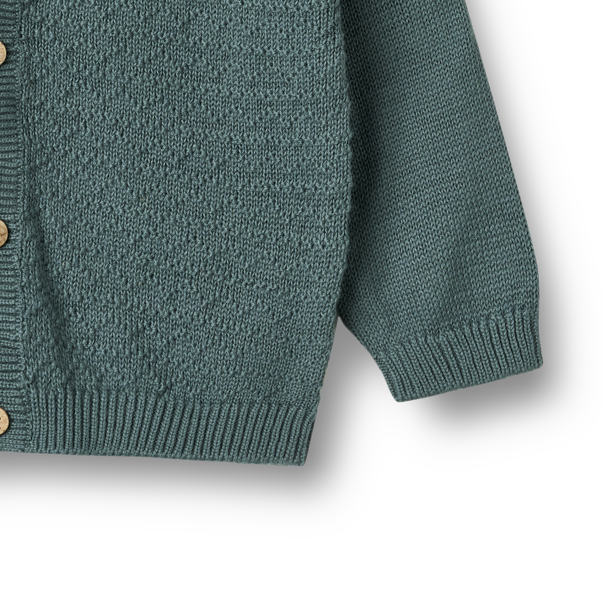 Long-sleeved knit cardigan in soft organic cotton for babies.