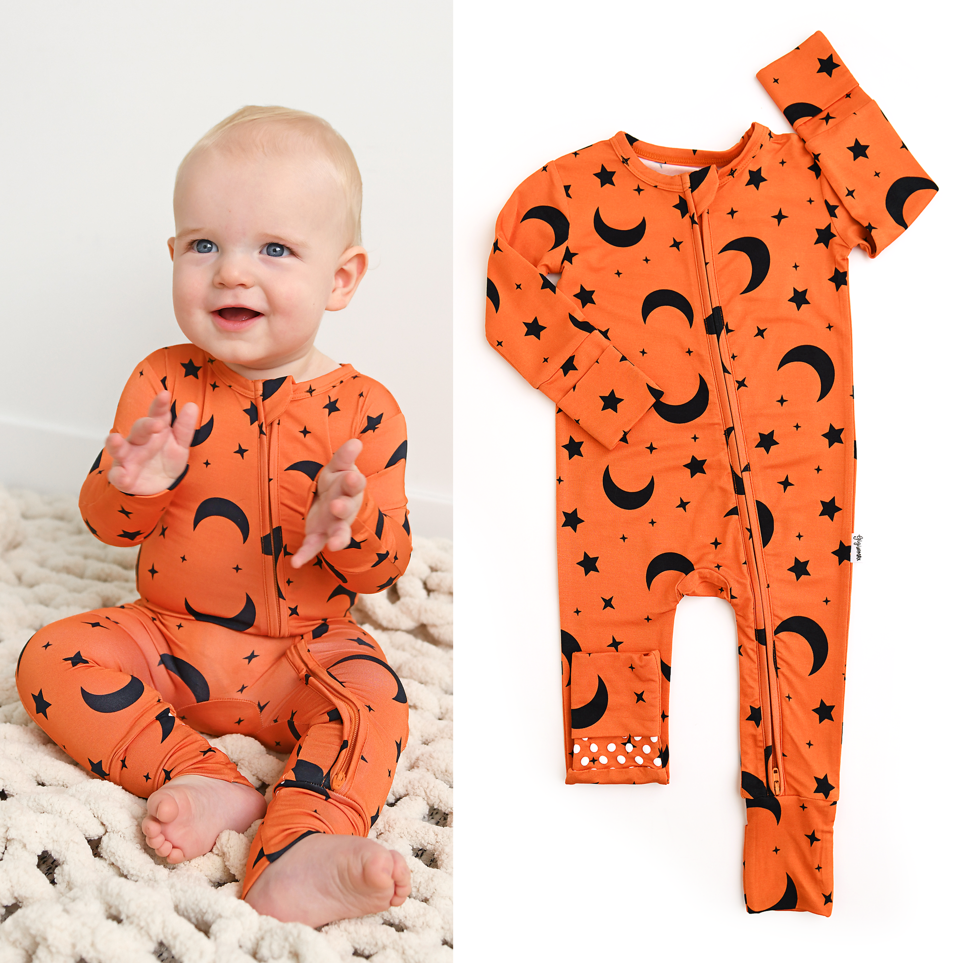 Blaise Orange Moon Zip Romper | Gigi & Max