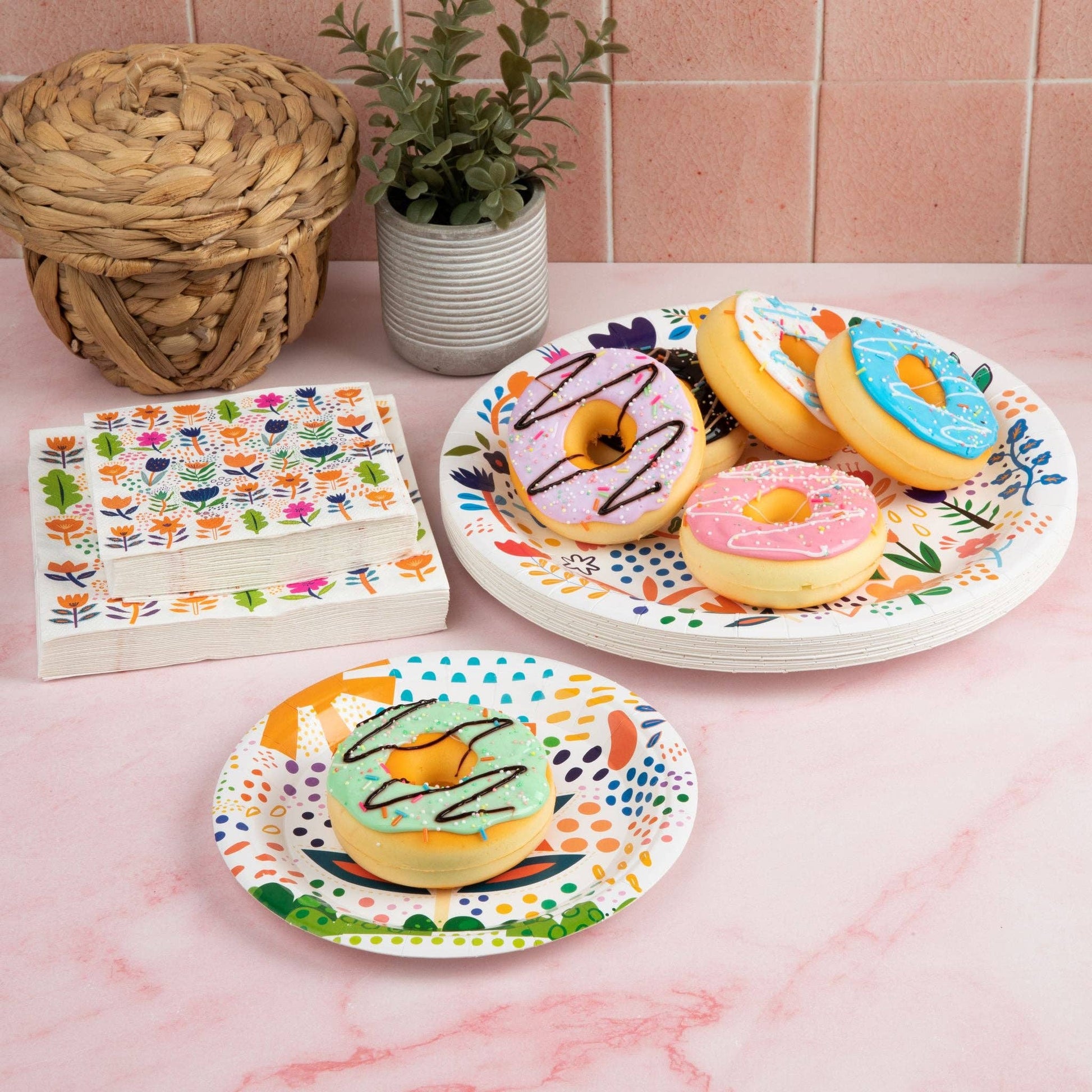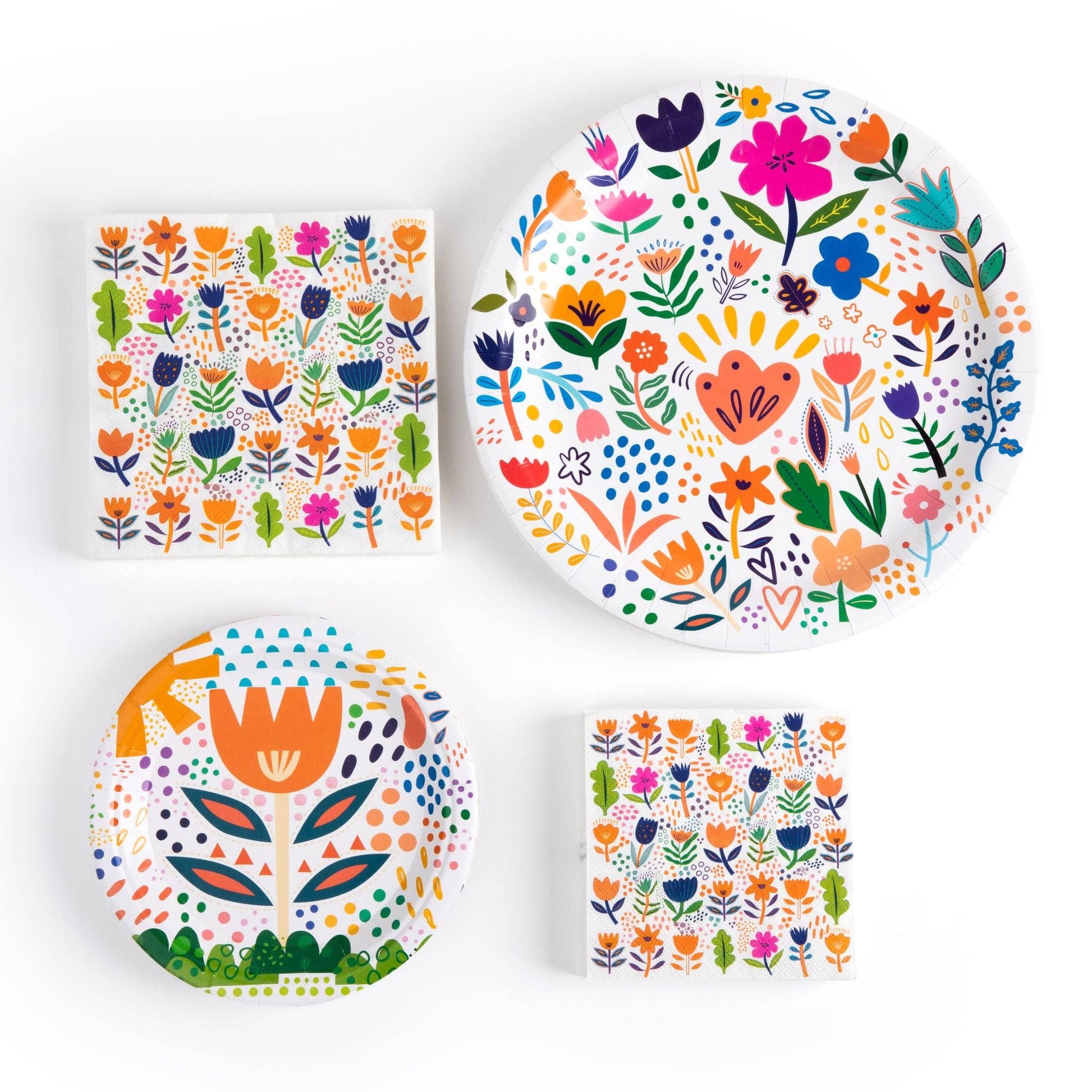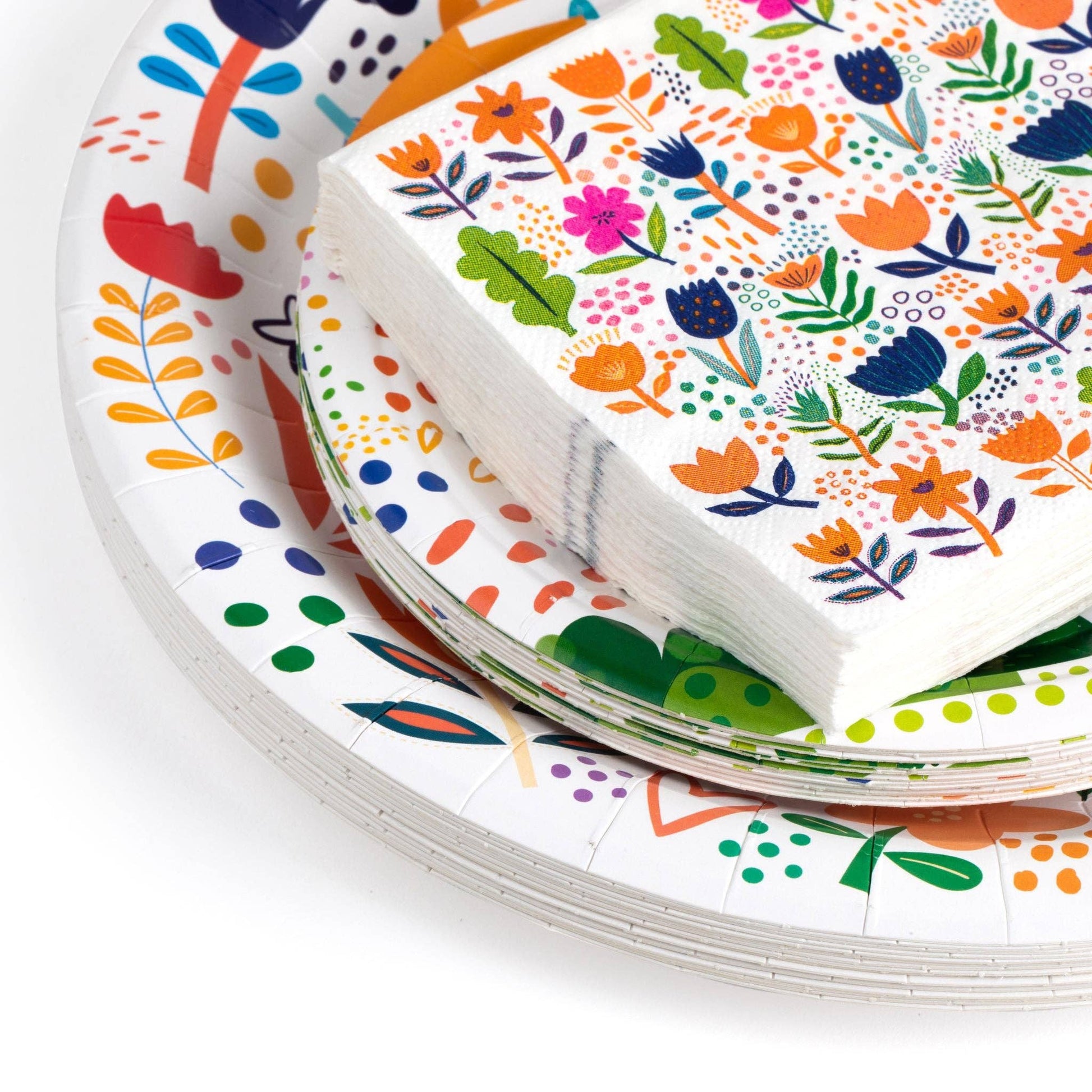 "Blossoming Medley" 80 Piece Paper Plate & Napkin Set | Fabuplates