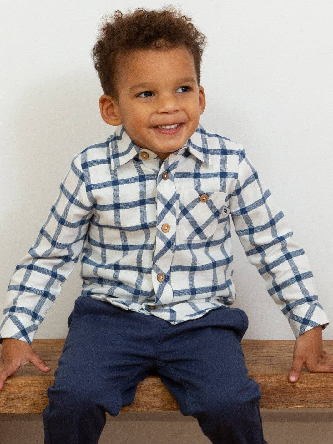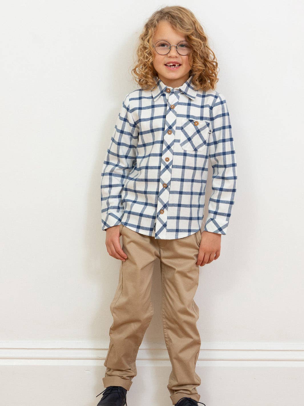 Check mate! This classic flannel shirt in a lovely cream and navy check is both easy to wear and versatile. Pair it with chinos or cords for a smart vibe, or layer it over any of their great t-shirts for a trendy, layered look.