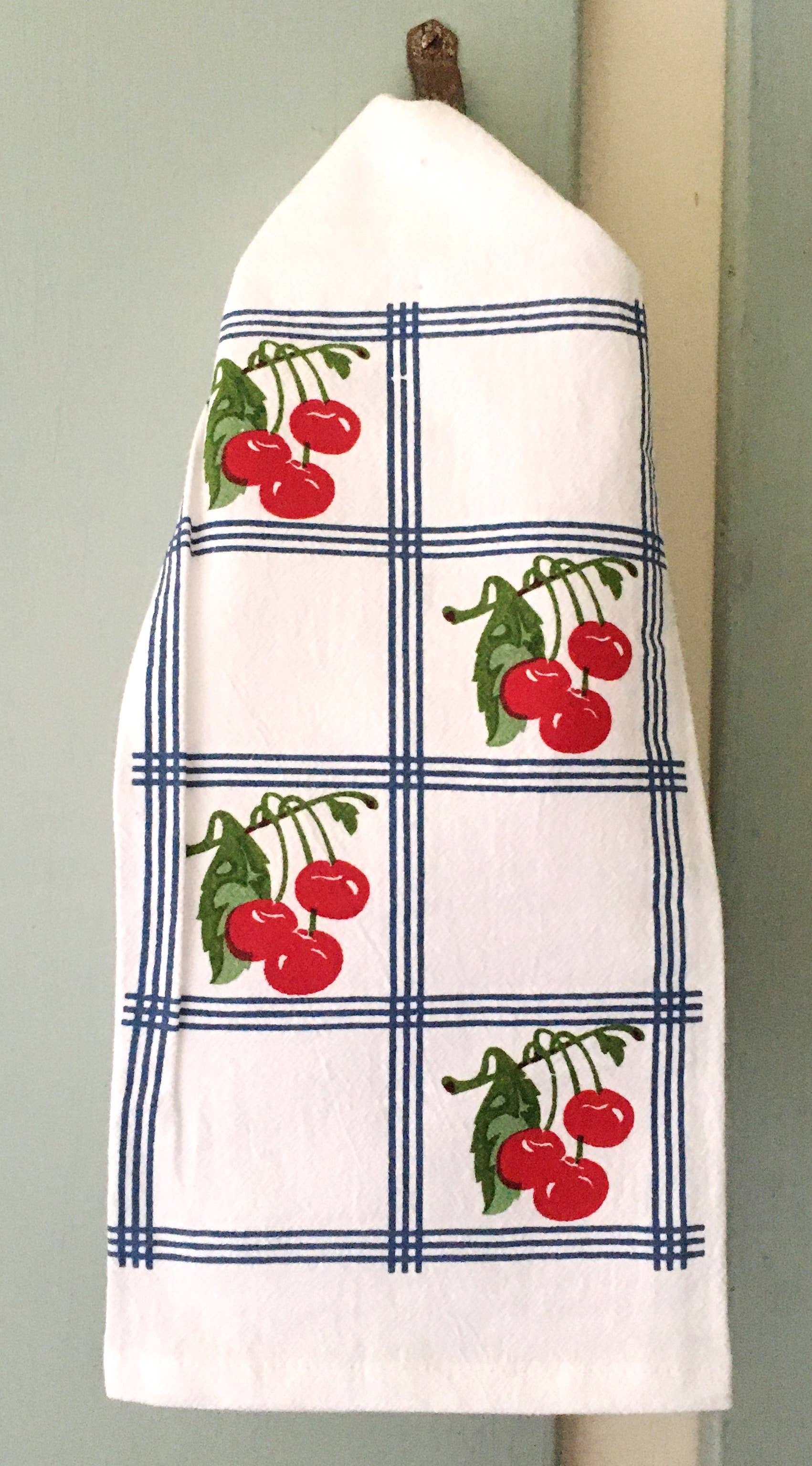 Blue Country Cherry Retro Flour Sack Towel | Red & White Kitchen Company