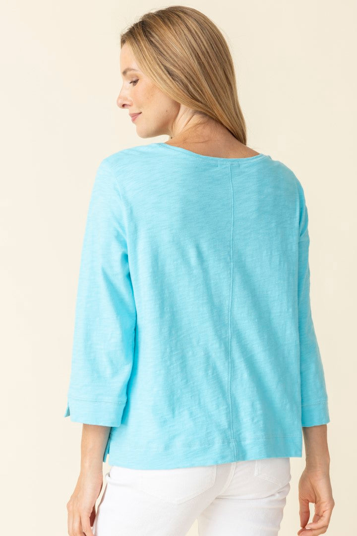 - 3/4 sleeves with 2-inch slits on cuffs.