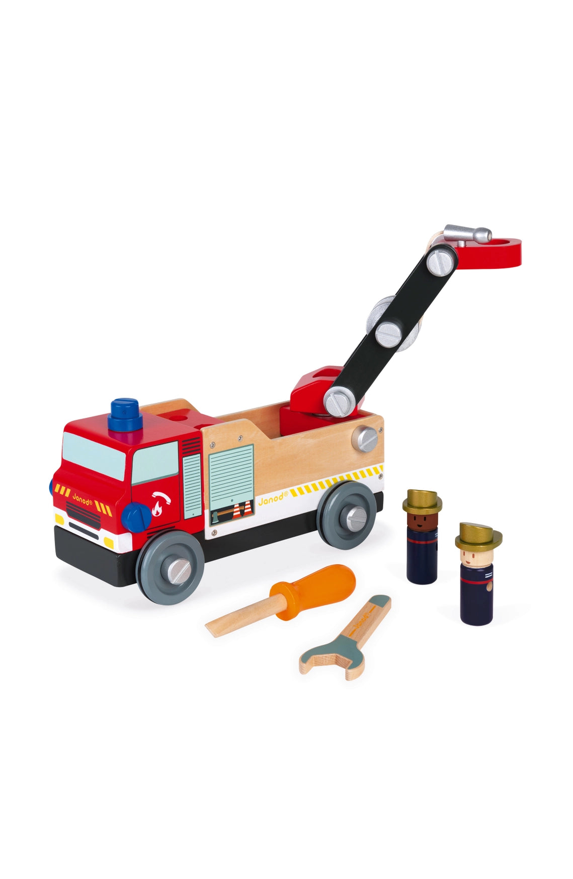 Your little ones will love this attractive, build-it-yourself fire engine! Ideal for children from 3 to 8 years old, this 2-in-1 wooden toy will delight DIY enthusiasts and budding firefighters alike! This set starts as a construction kit, as kids put together the beautiful fire engine using the nuts, bolts and screws provided. Once the vehicle is assembled, it’s time for them to switch on their imaginations and send their new fire engine out on all sorts of adventures! This 45-piece set includes 2 tools, 2 firefighters and assembly instructions. The fire engine is made of wood from sustainably managed forests.