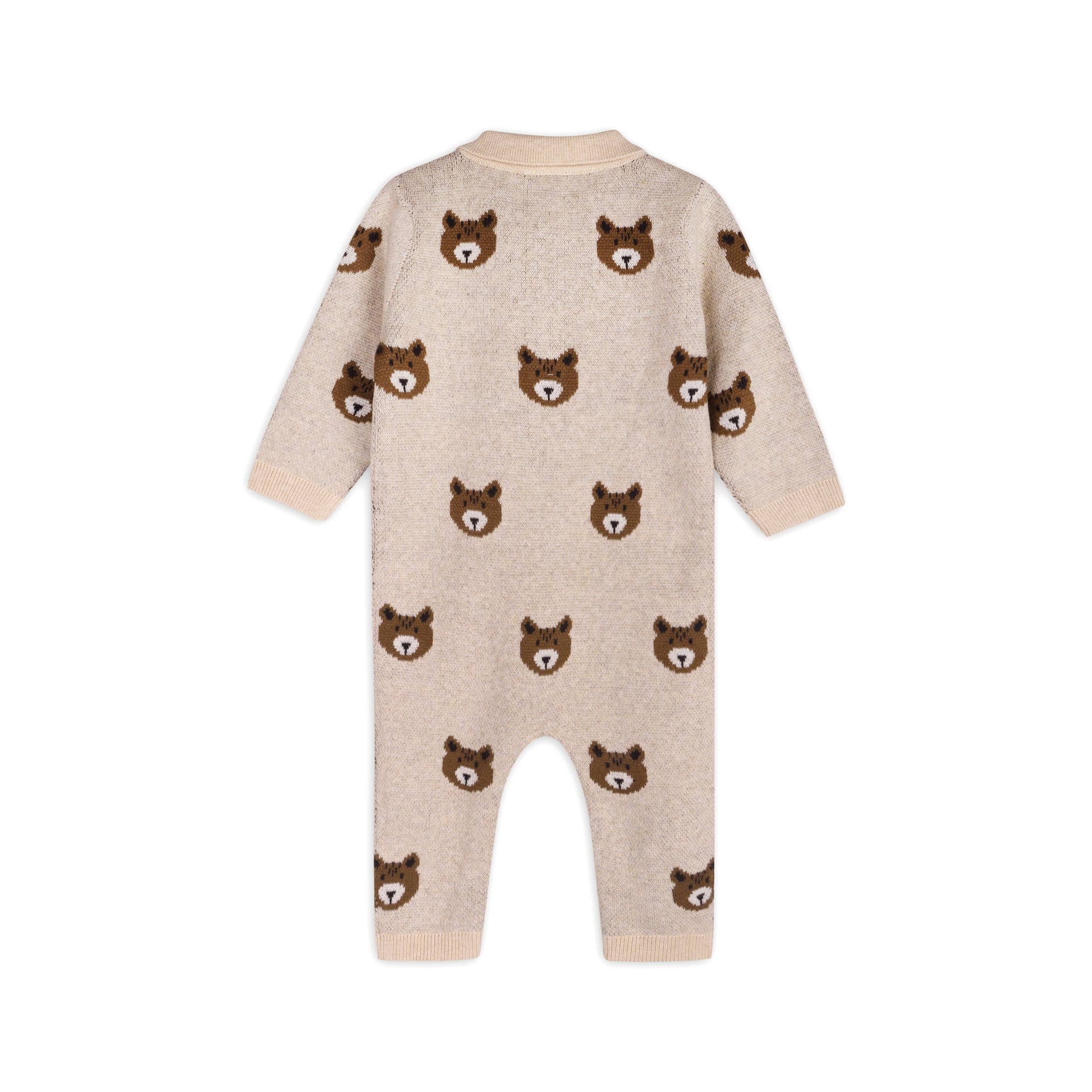 Brown Bear Jacquard Sweater Knit Jumpsuit | Viverano Organics