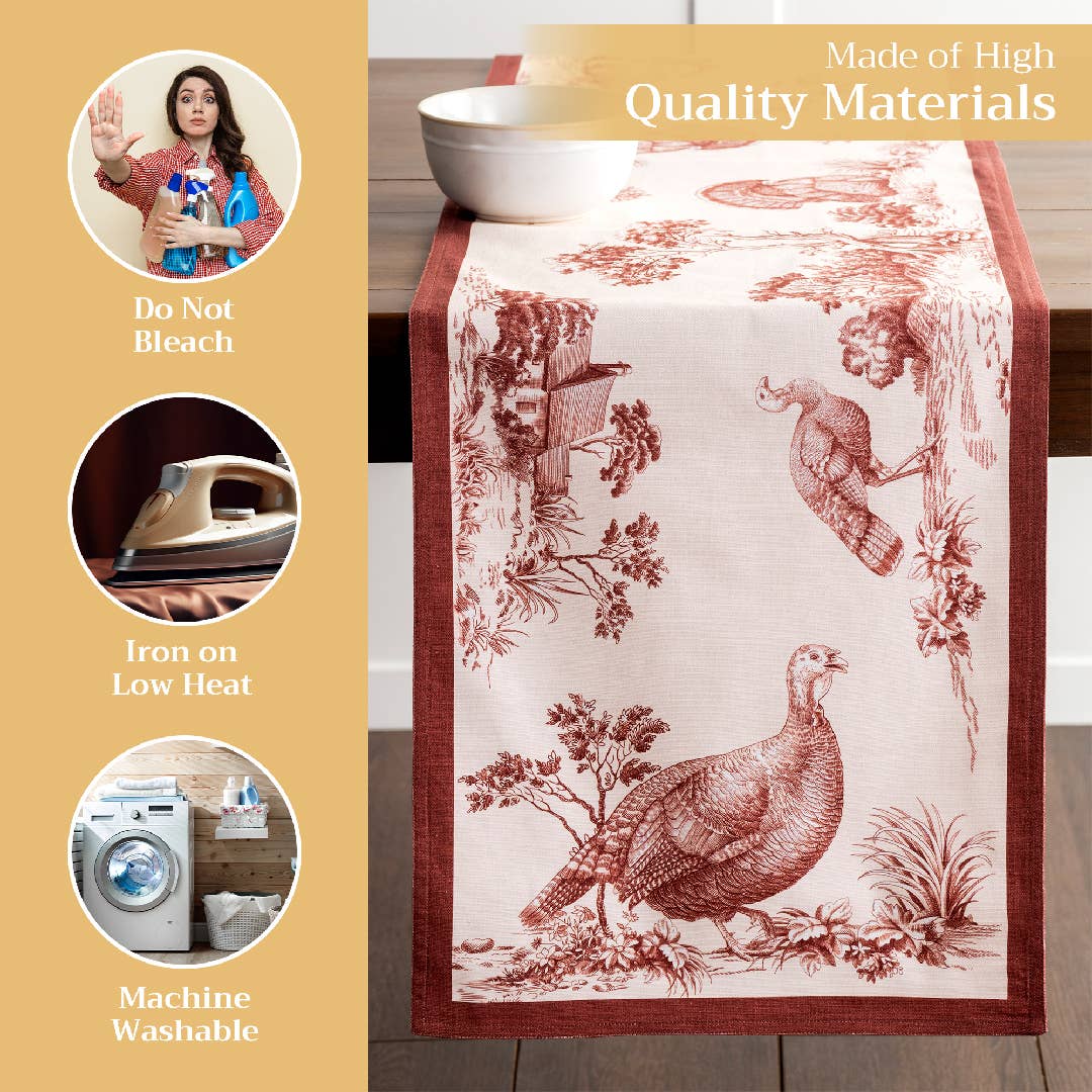 Made from 100% cotton, this double-layer table runner features coordinated seasonal patterns on both sides — ideal for dressing up your dining table with warmth and charm during Thanksgiving gatherings.