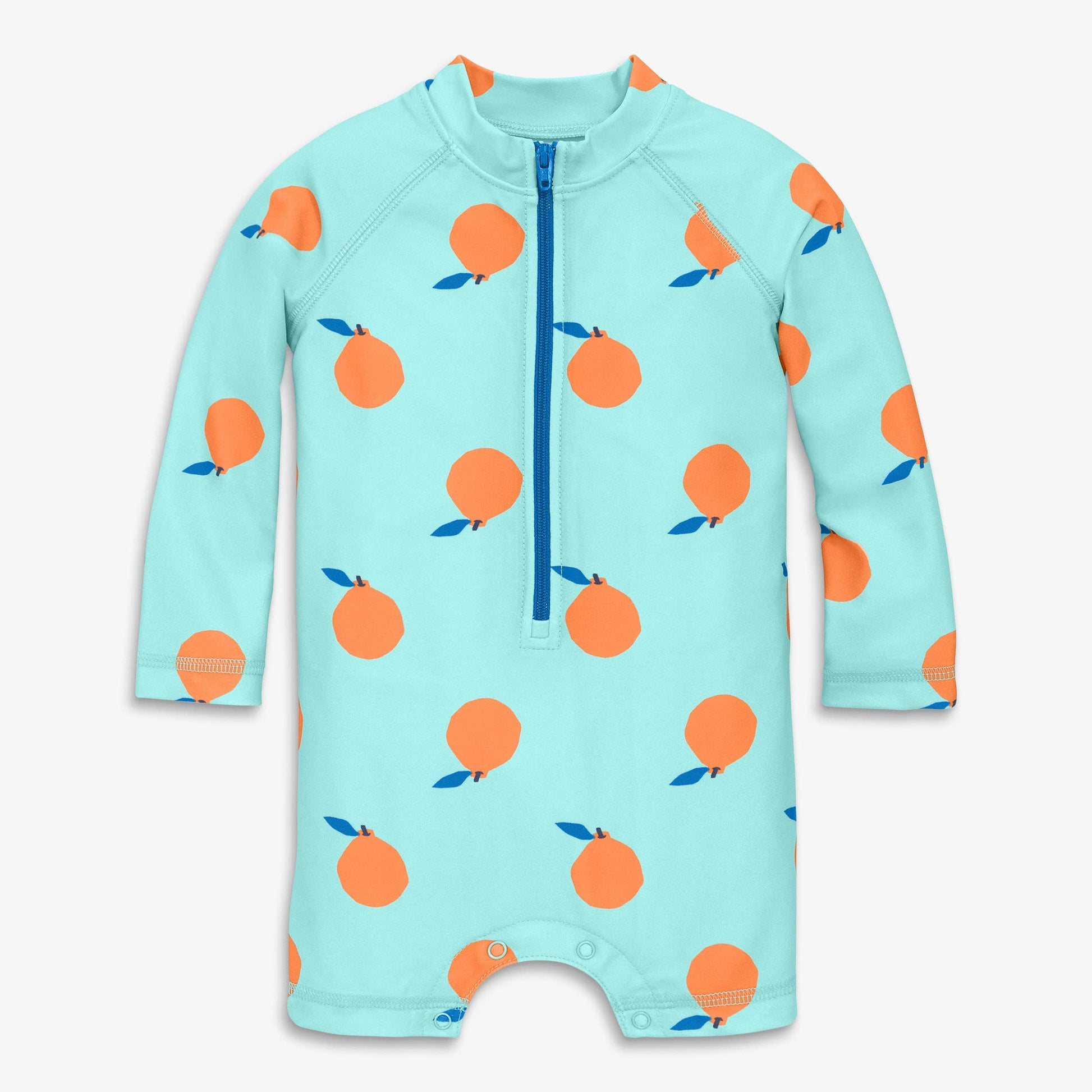 A one-piece rash guard to squeeze into their swim drawer. Made with slather-free sun protection—so baby can toddle in the water while staying protected.