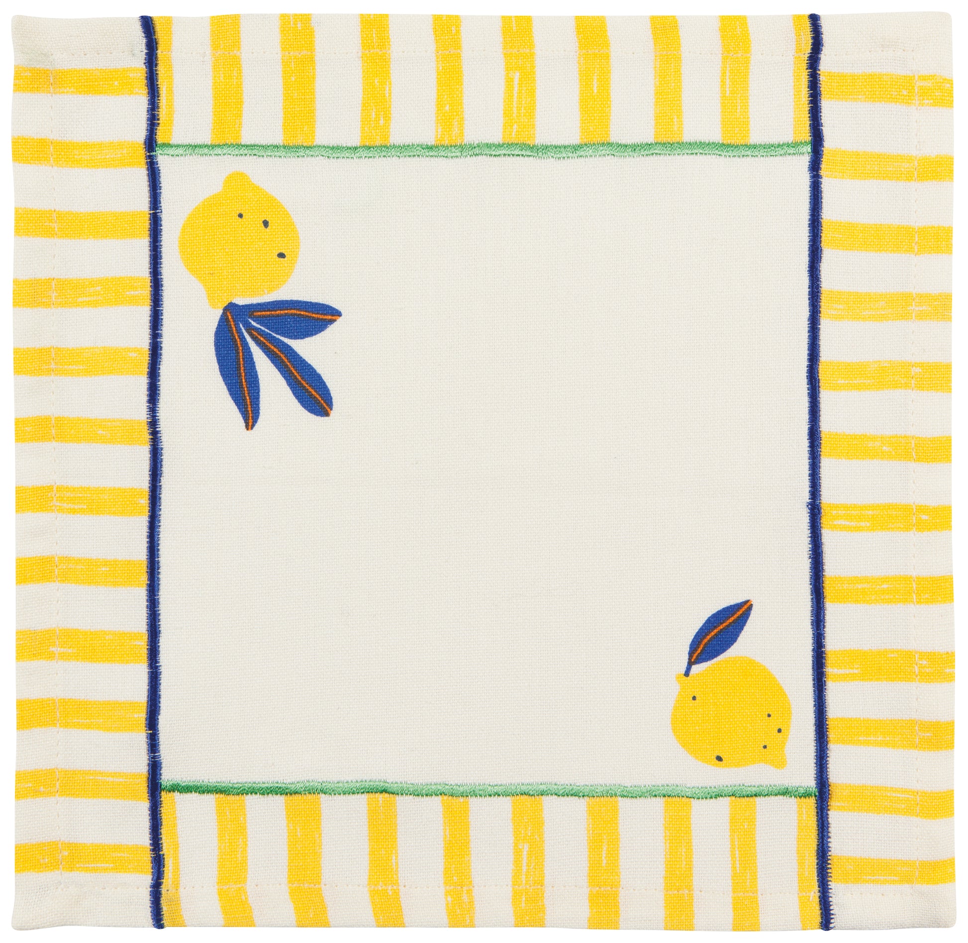 - Garnish the table and squeeze joy out of ordinary moments. Zesty lemons and oranges shine bright on boldly striped backgrounds in this refreshingly colorful collection of napkins, bowls, and mugs.