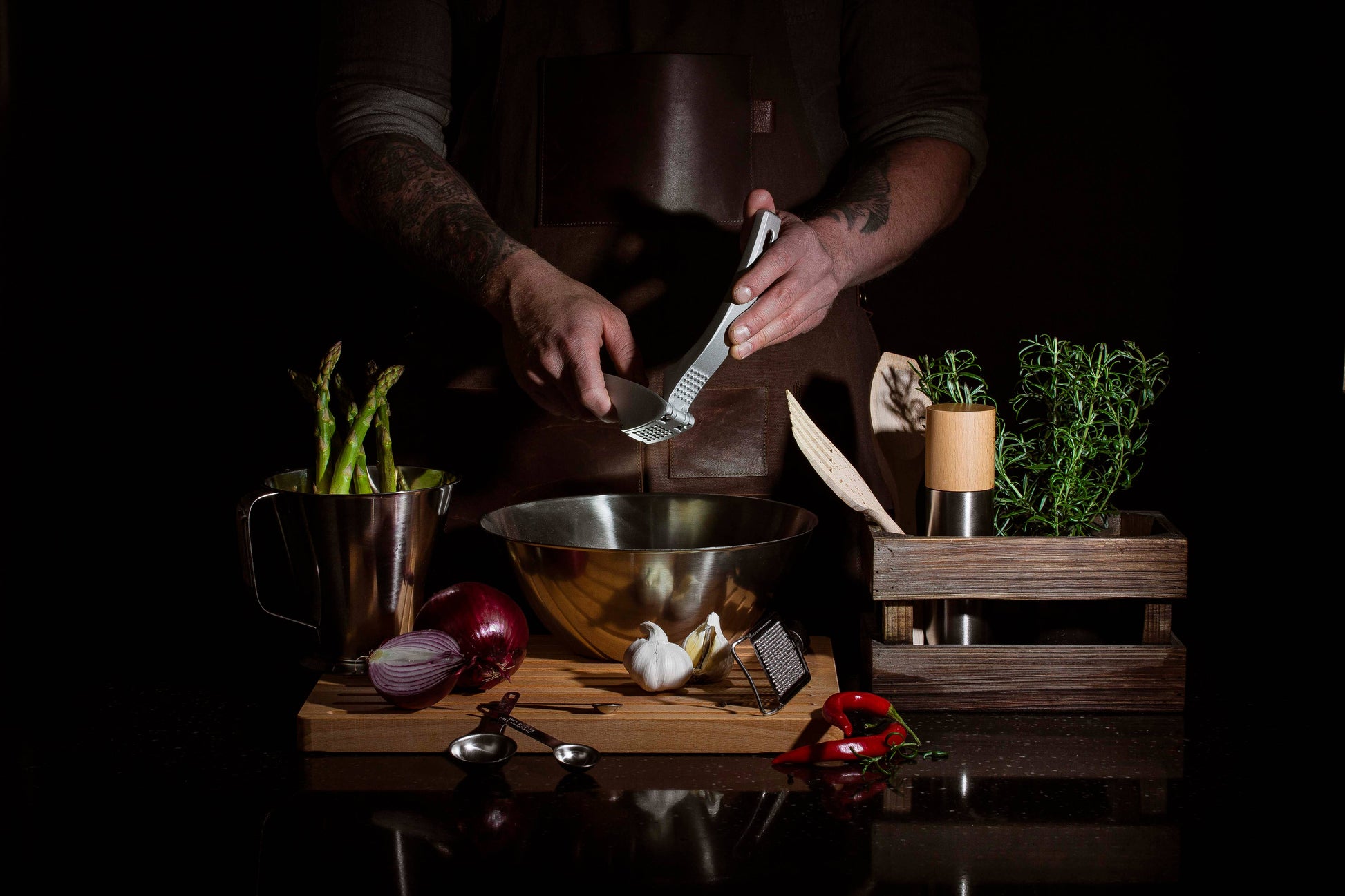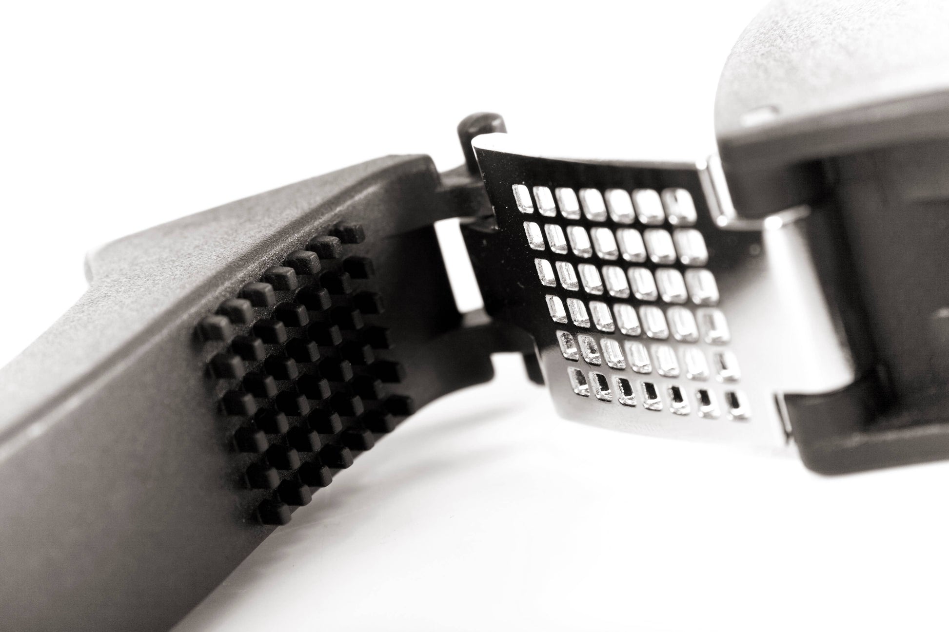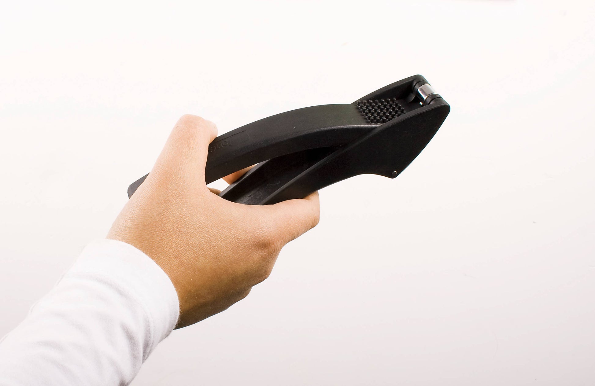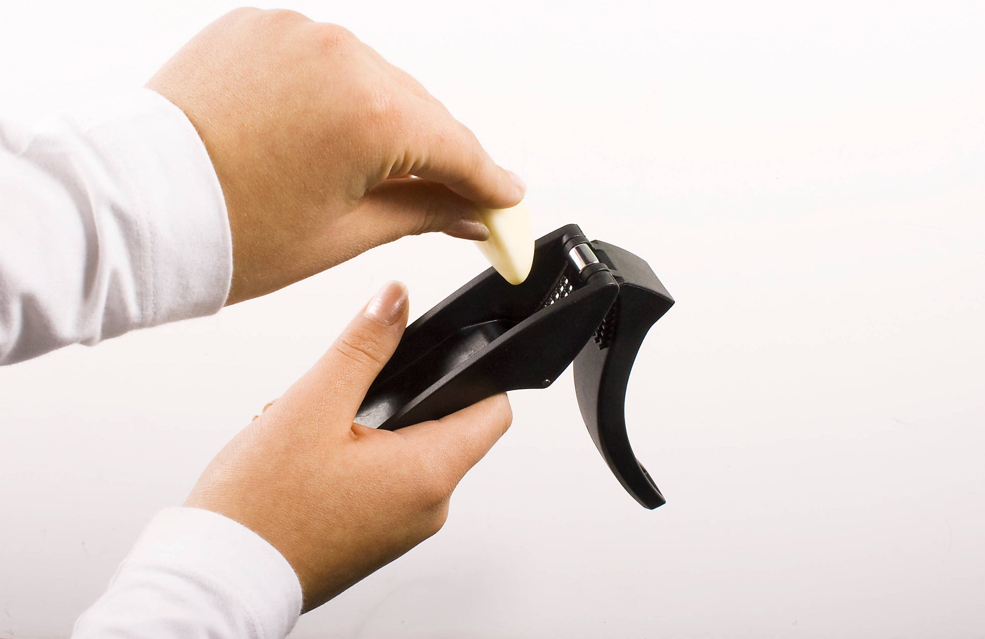 Flip the handle open to drop in a clove, flip it back to crush. Flip open again for efficient and easy cleaning.