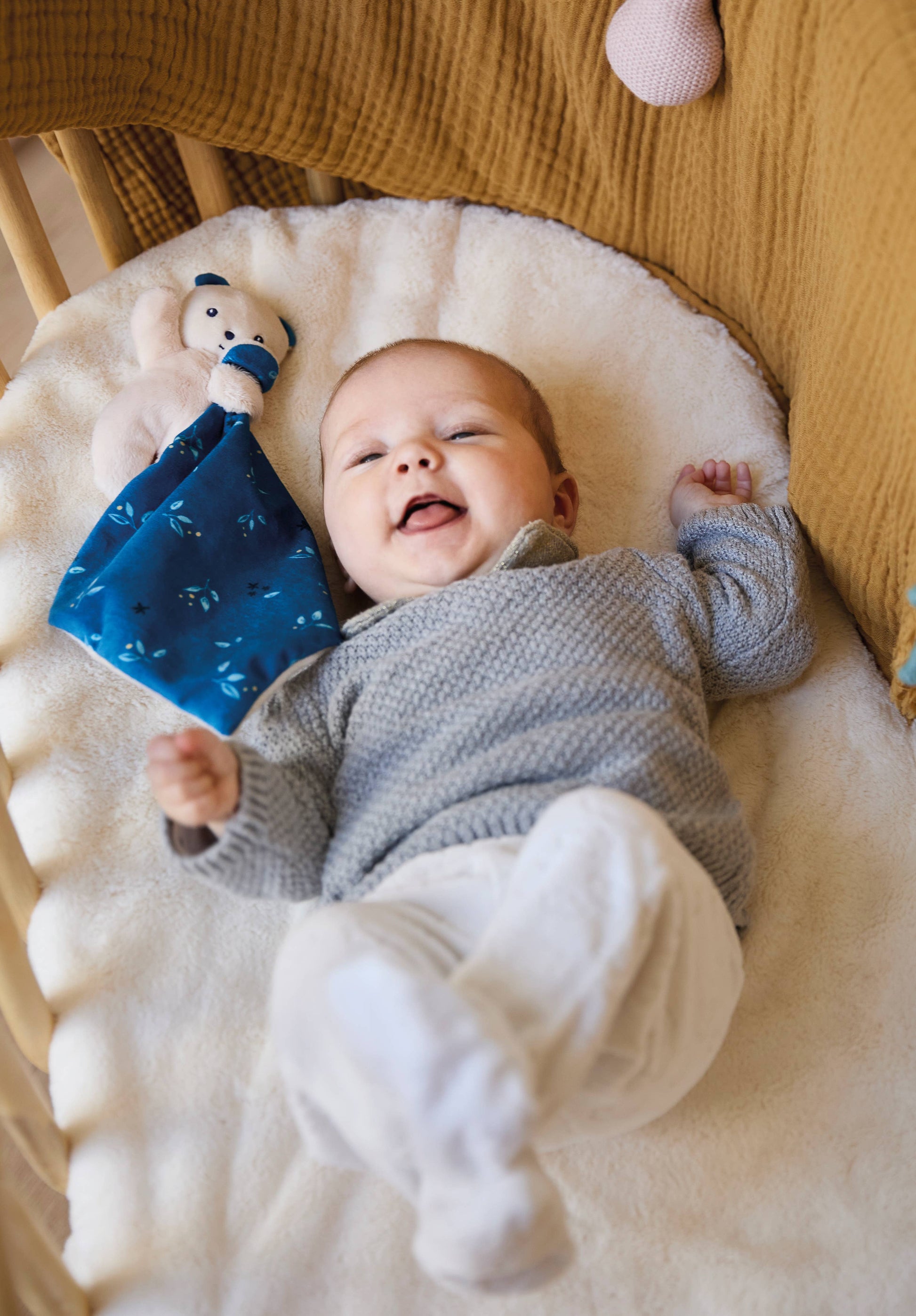 Introduce your child to the perfect cuddle companion with our adorable ‘Doudous’ or loveys. This charming little bear is ready to become your child’s new best friend. Soft Fabrics and Textures Crafted from super soft micro-velvet, this bear is designed to support your baby’s sensory development.