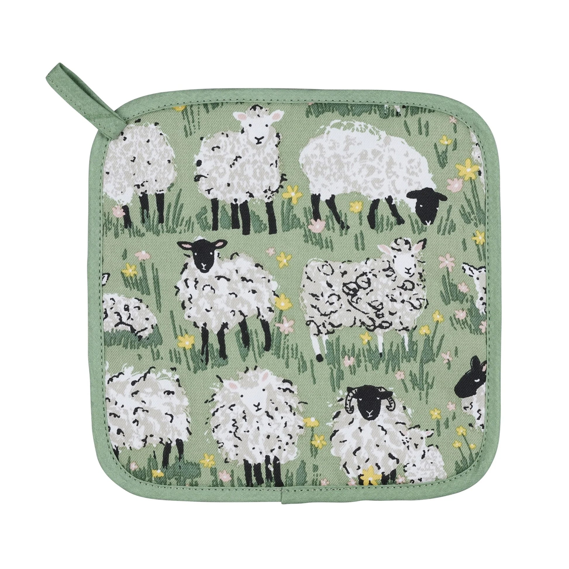 Wooly Sheep: A picturesque pastoral scene for country enthusiasts everywhere. These hand-illustrated sheep with their new born lambs will bring joy and delight to every style of kitchen. The curly fleeces and friendly facial expressions add fun while the bright meadow flowers are the perfect finishing touch, all against a backdrop of muted warm green inspired by springtime walks through the lush Northern Irish countryside.