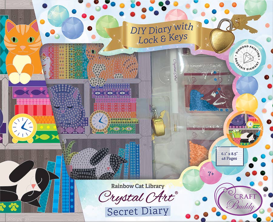 Crystal Art Secret Diary Kit: Rainbow Cat Library | Outset Games