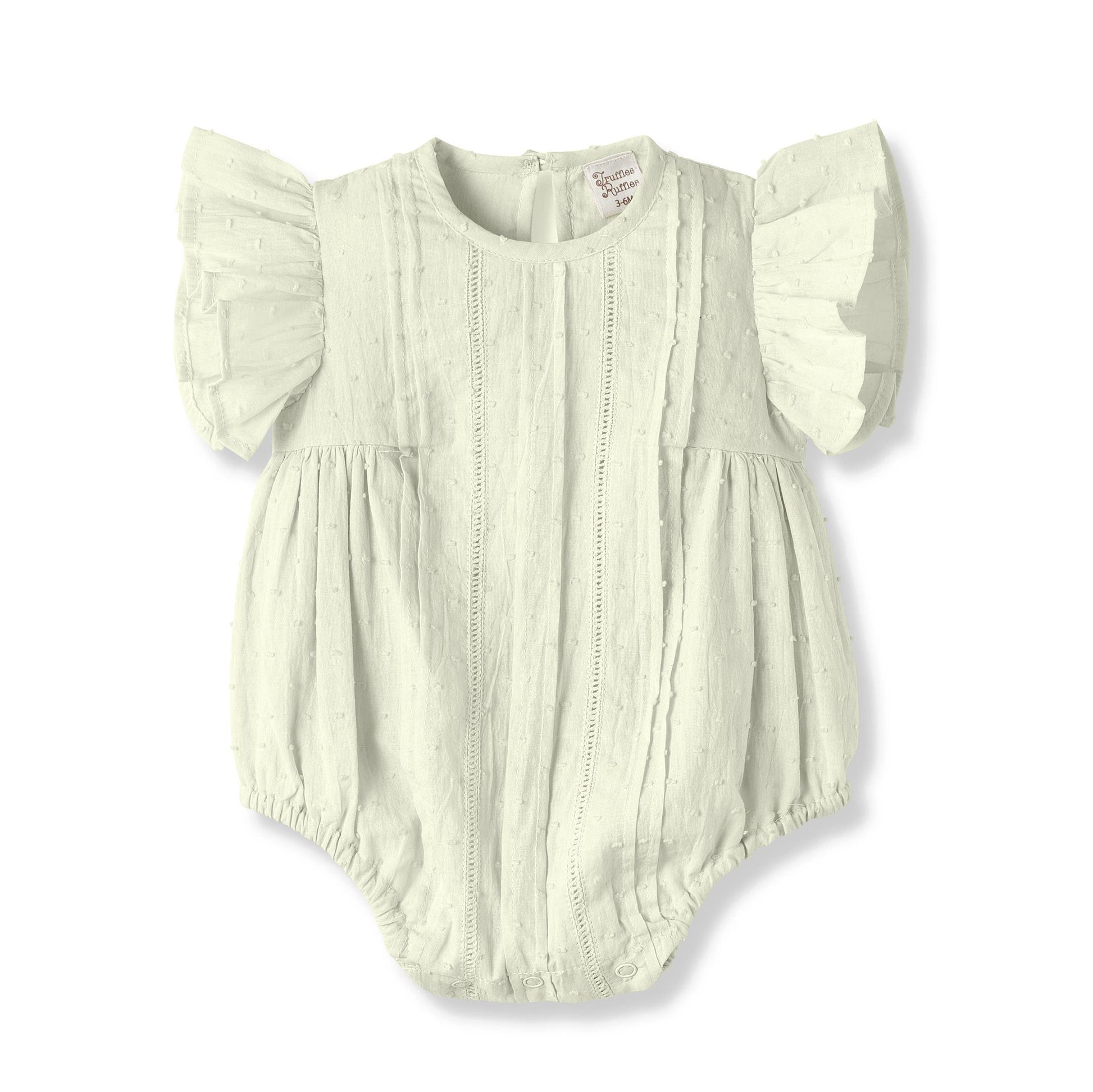 Wrap your little one in elegance with our 100% Swiss dot cotton bodysuit featuring exquisite ladder-stitch detailing.
