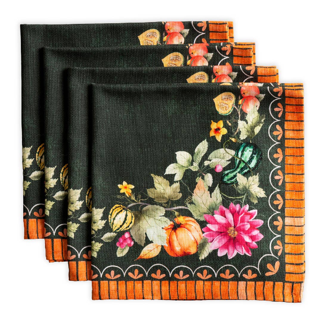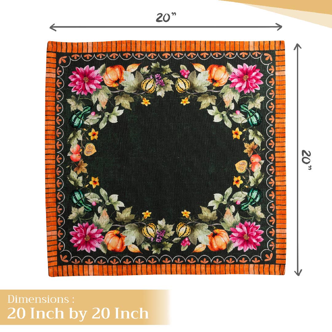 Made from 100% cotton, this set includes four napkins, each measuring 20 by 20 inches — soft, durable, and perfect for bringing warmth and elegance to your Thanksgiving table.