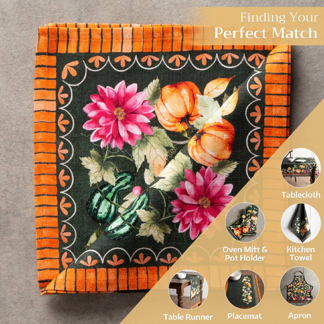 Dark Green Pumpkin Garden Cotton Napkin Set | Maison d'Hermine