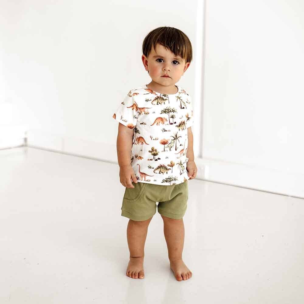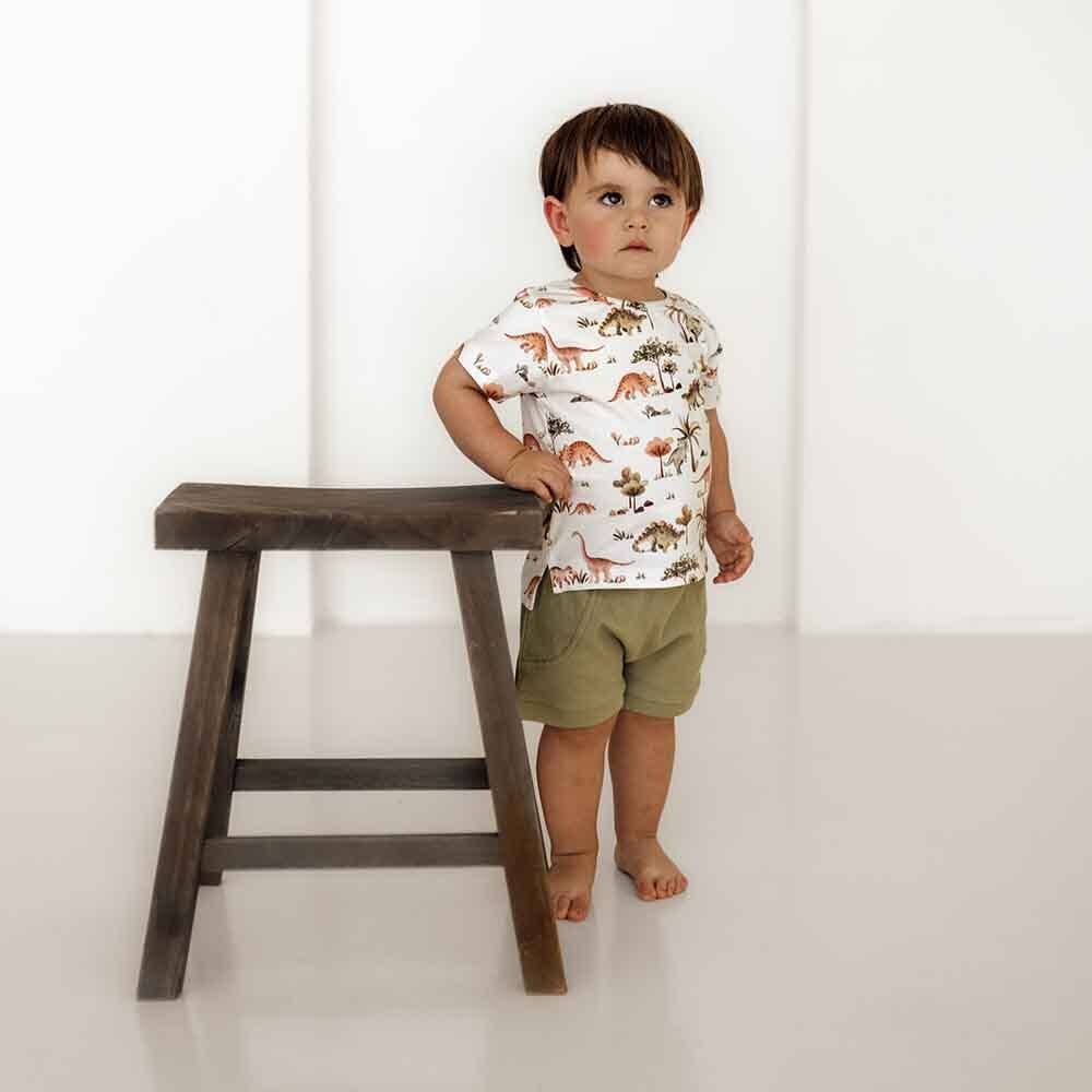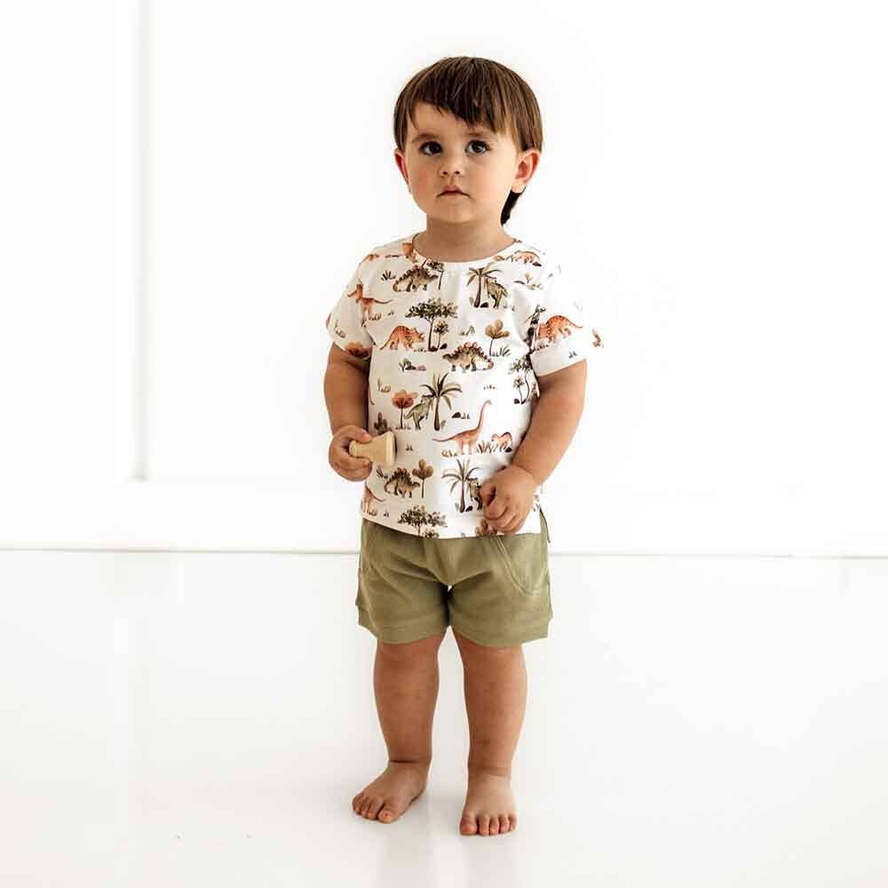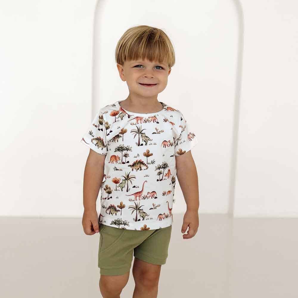 Our gorgeous Dino print is now available in a T Shirt! Snuggle Hunny organic T-shirts are perfect for older babies and toddlers. They are practical whilst being very stylish and coordinate well with our pants and shorts. They are easy to wear and comfy for little ones.