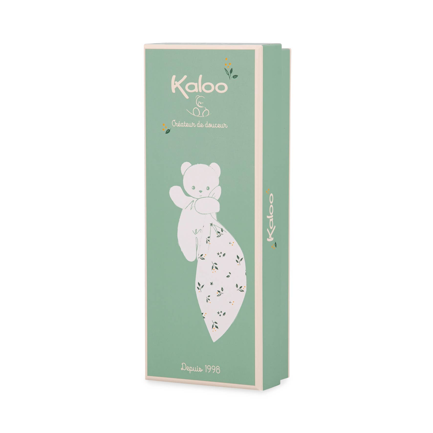 With its small fluffy micro-velvet body, the rabbit is easy to grasp and hold by its body or its long ears. The little rabbit holds between his paws a blanket painted with golden lemons and other rural details. This delicate and poetic print is found in the rabbit’s ears and enhances the whole.