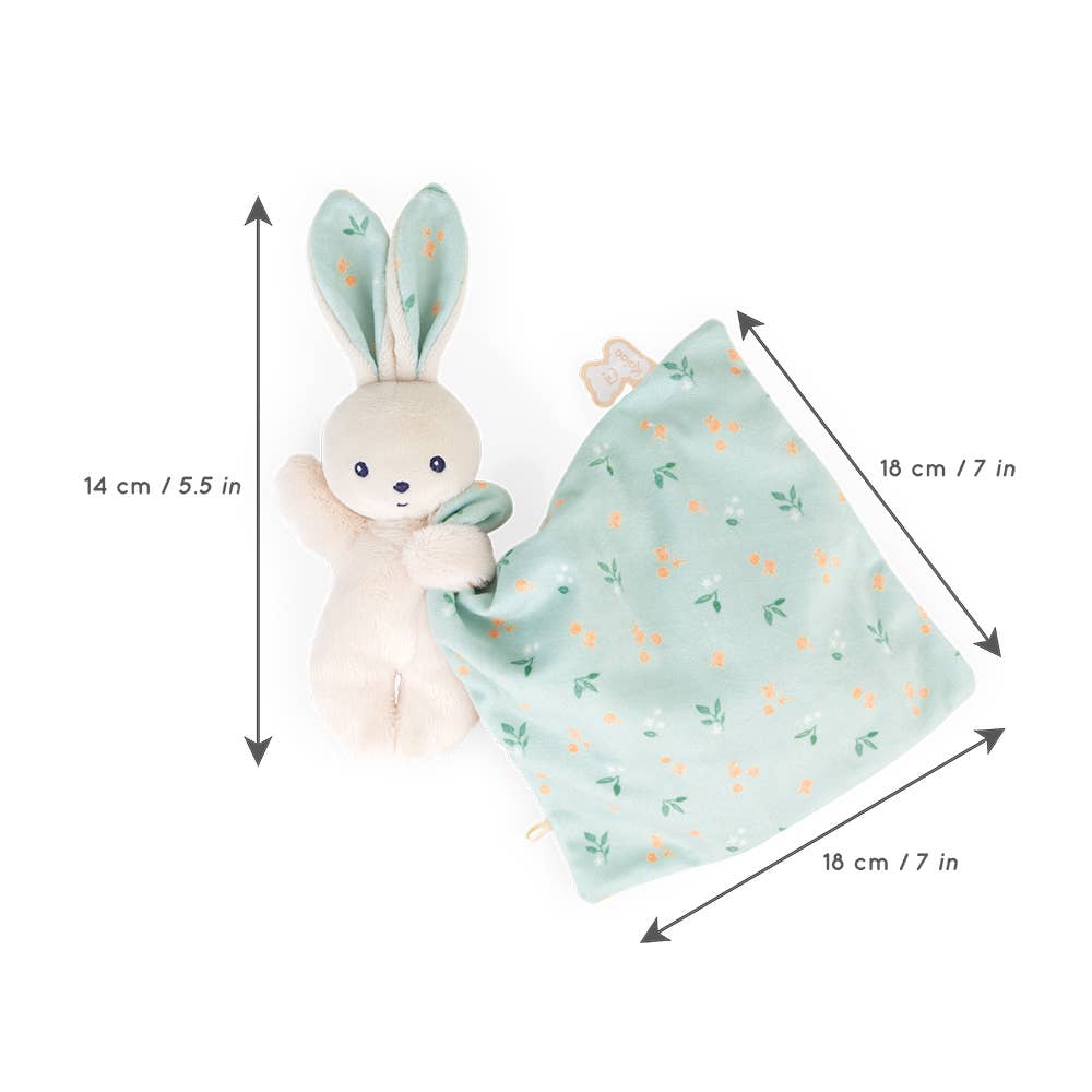 This rabbit enveloped in a square of softness will be the baby's favorite companion.