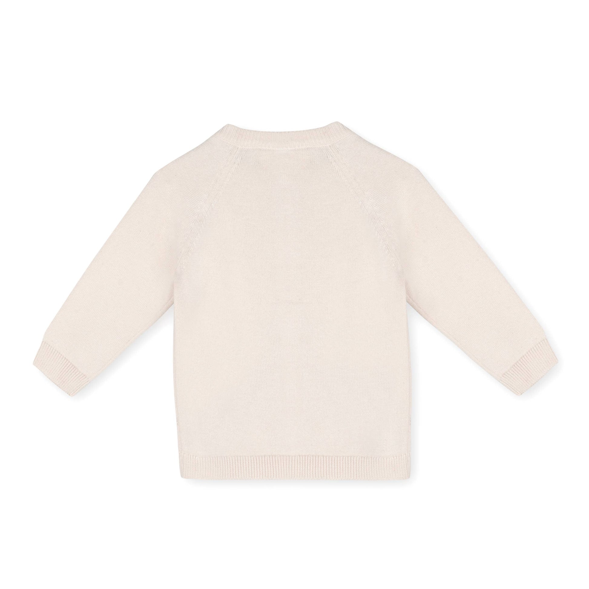 100% organic cotton baby sweater, featuring Mommy & Me embroidery and jacquard knit design.