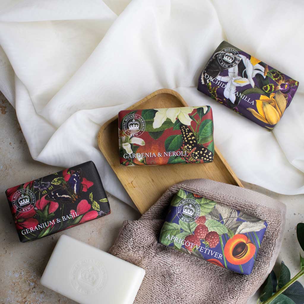 Part of the Kew Gardens Collection, these generously sized 240g bar are long-lasting and enriched with moisturising shea butter and vegetable glycerine to nourish and care for the skin. The paper wraps are printed with beautiful illustrations inspired by the plants, from Kew’s historical archives.