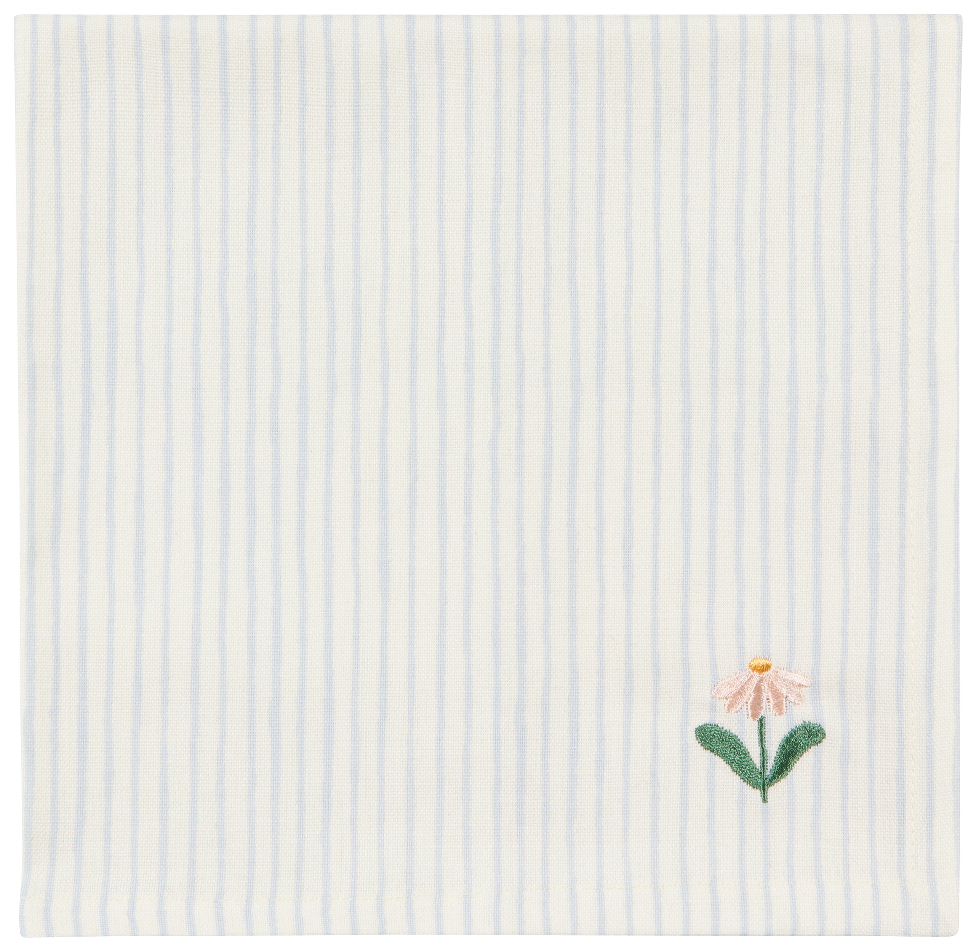 - Soft, slow, picnic-perfect summer days inspire this bright and airy collection where hand-painted daisies and ladybugs flower and flit across a striped light blue and comforting cream surface.