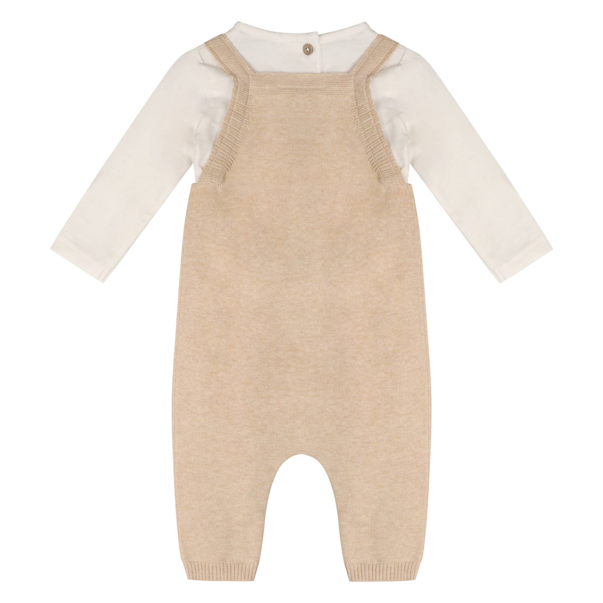 100% organic cotton sweater knit baby overall with long sleeve bodysuit as a set, ultra-soft hand feel.