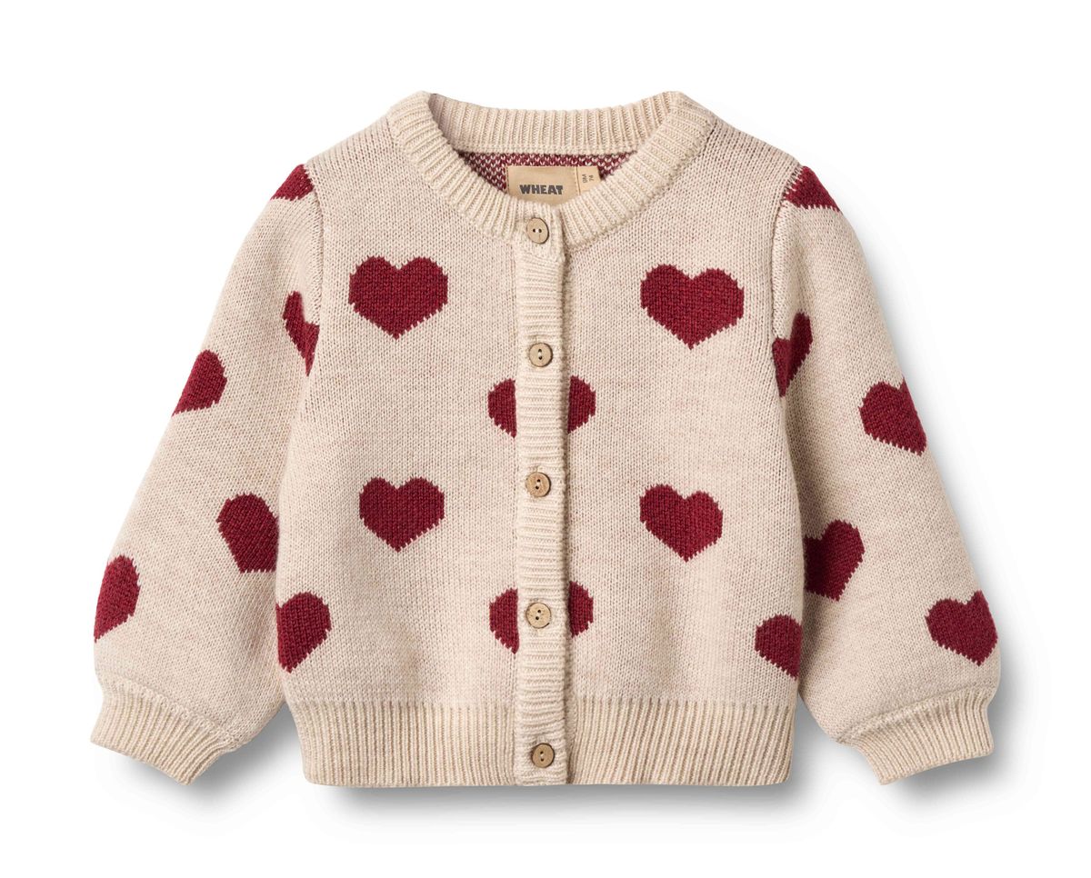 - Long-sleeved knit cardigan in soft wool with cute heart pattern