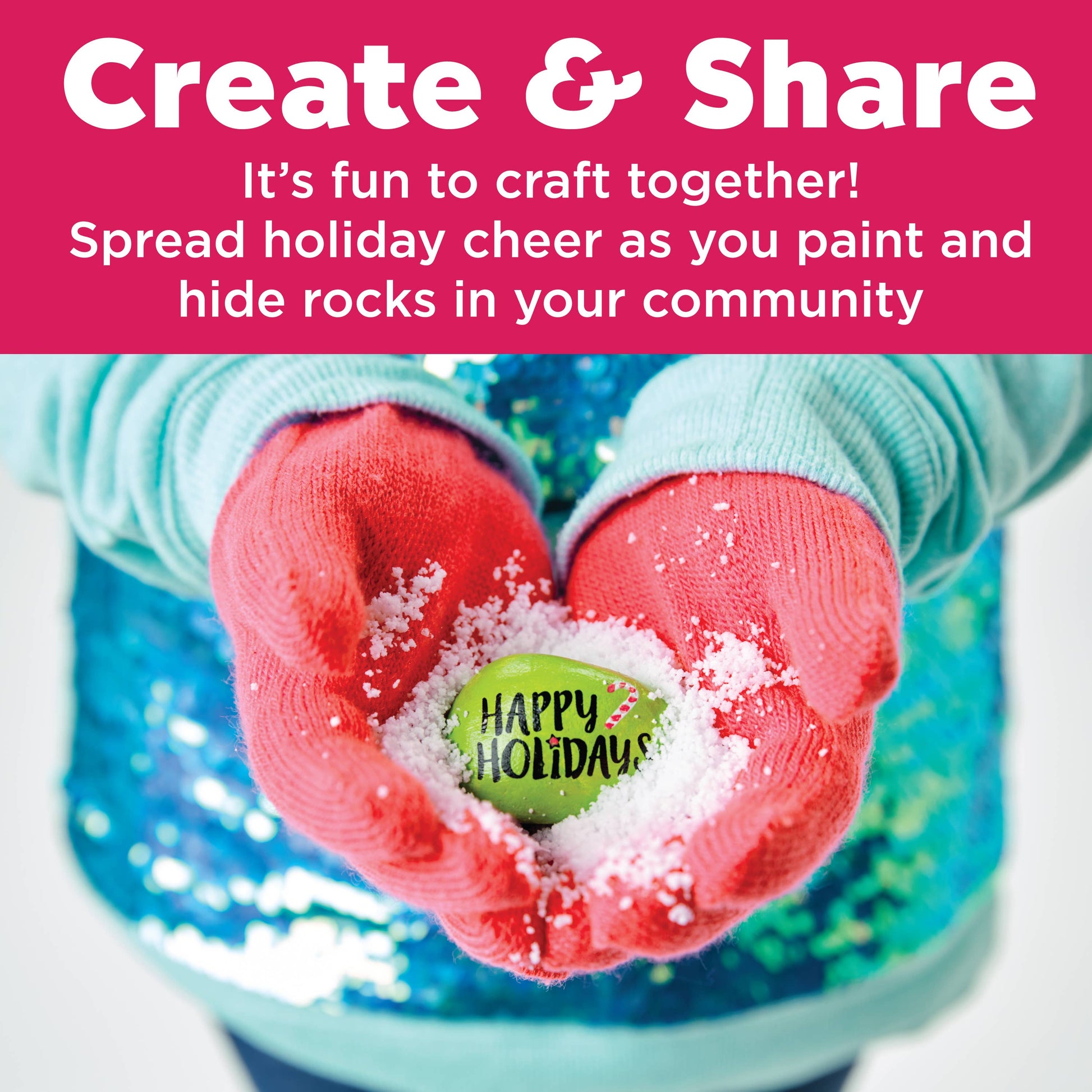 Turn 10 river rocks into holiday themed treasures by painting and decorating them with Holiday Hide and Seek Rock Painting Kit by Creativity for Kids.