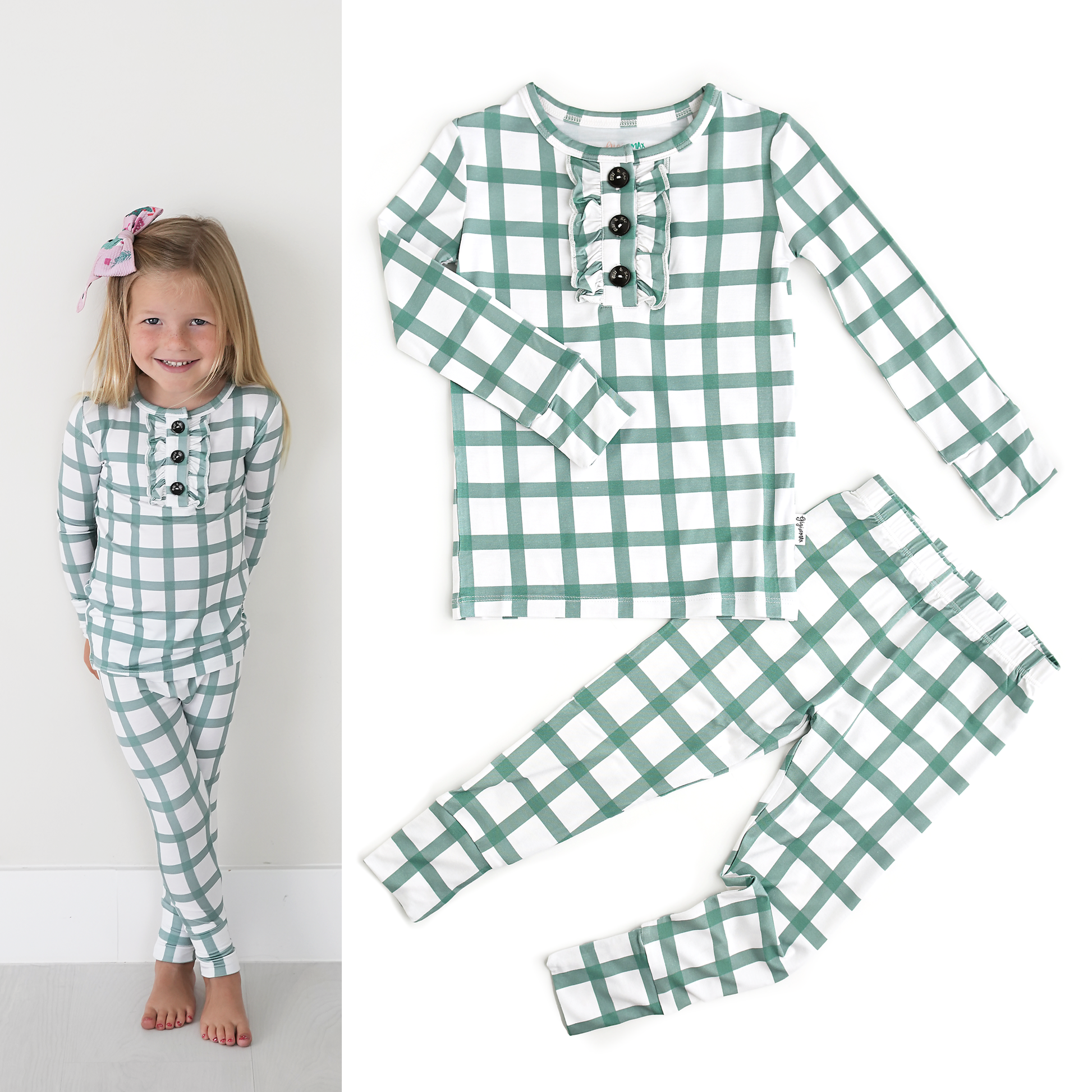 Joy Green Plaid Ruffle Bamboo Pajama Set | Gigi & Max