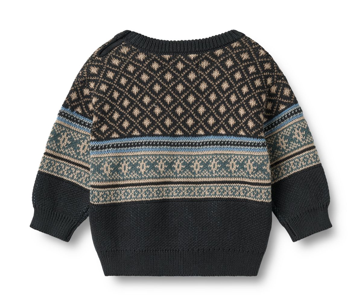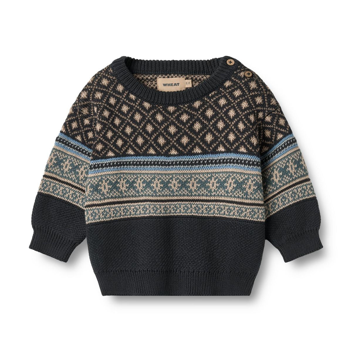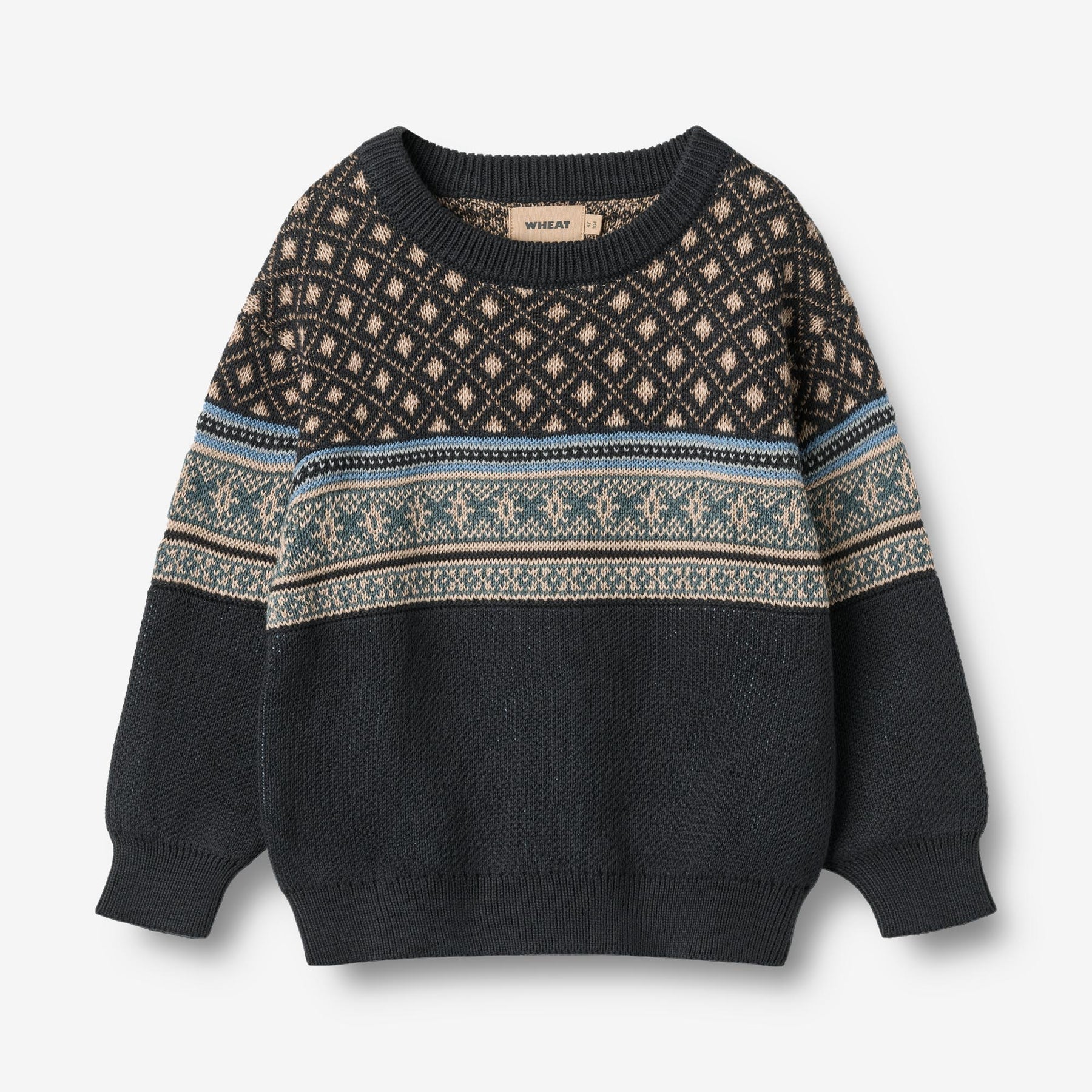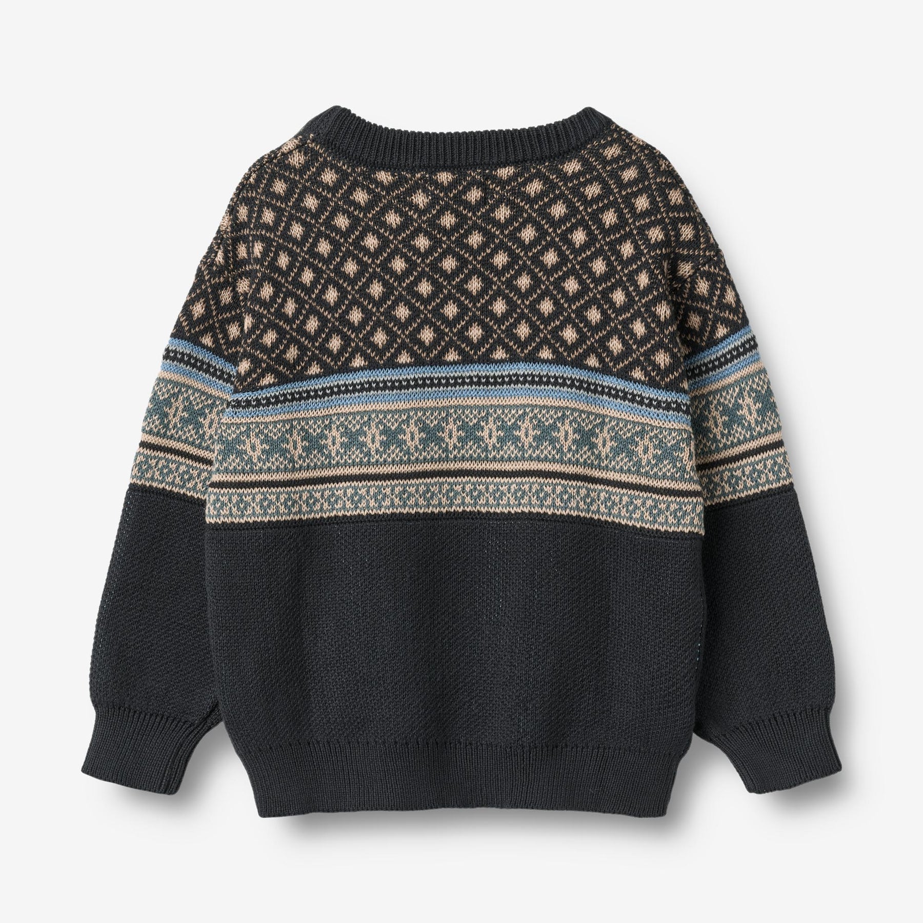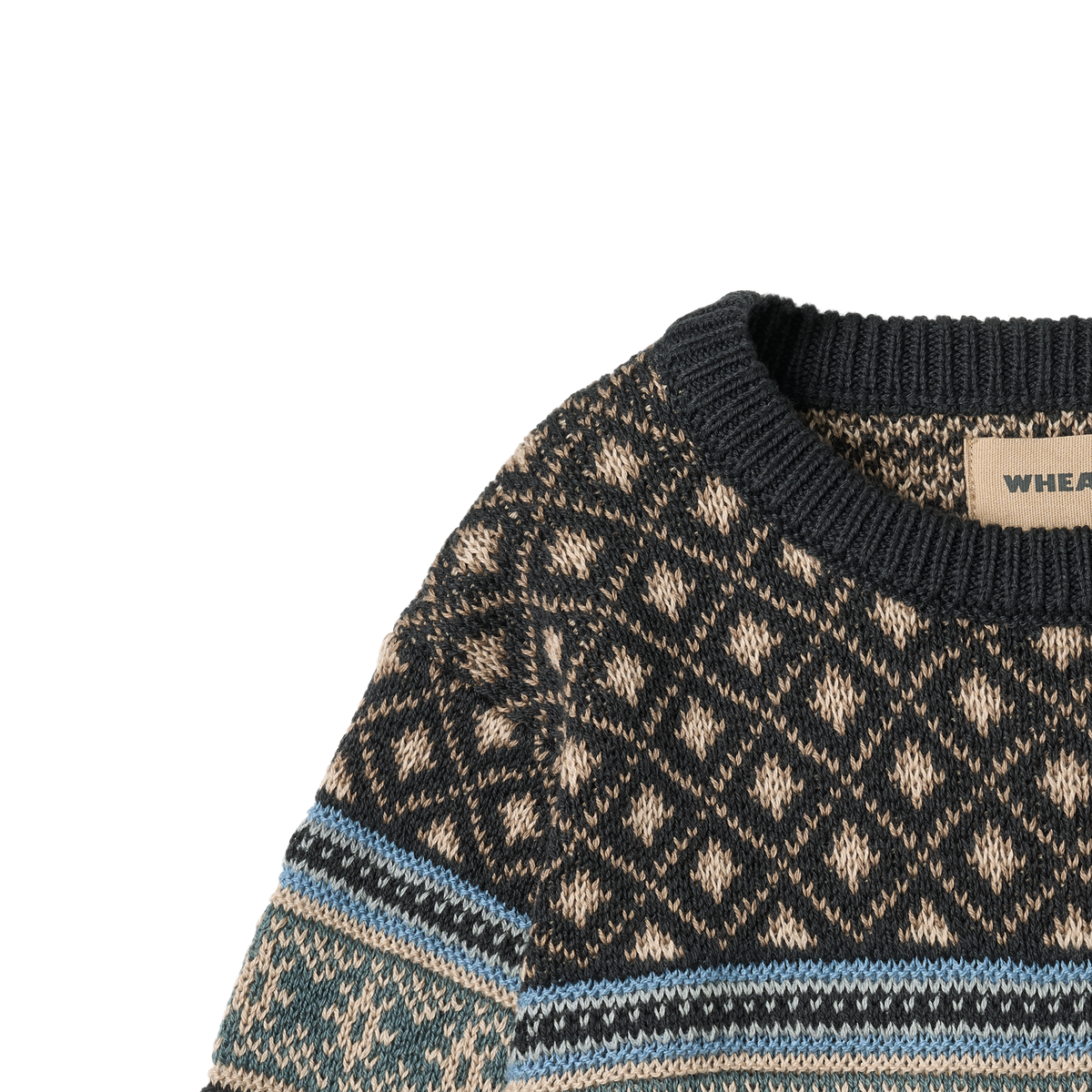 Julius Organic Jacquard Pullover - Navy | Wheat