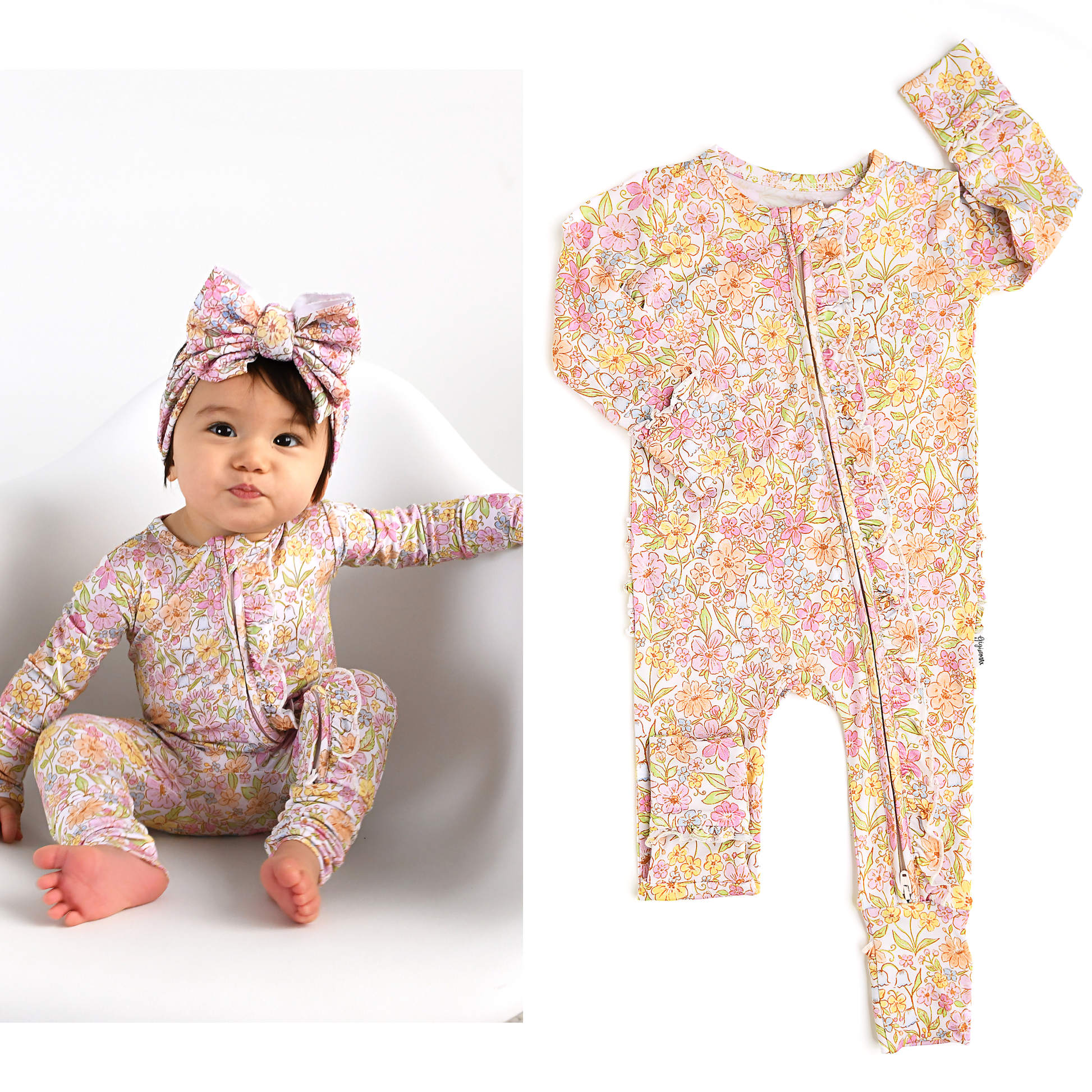 Our favorite part about this outfit is that the zipper is 2 way! Making for super easy diaper changes without having to remove the whole outfit.