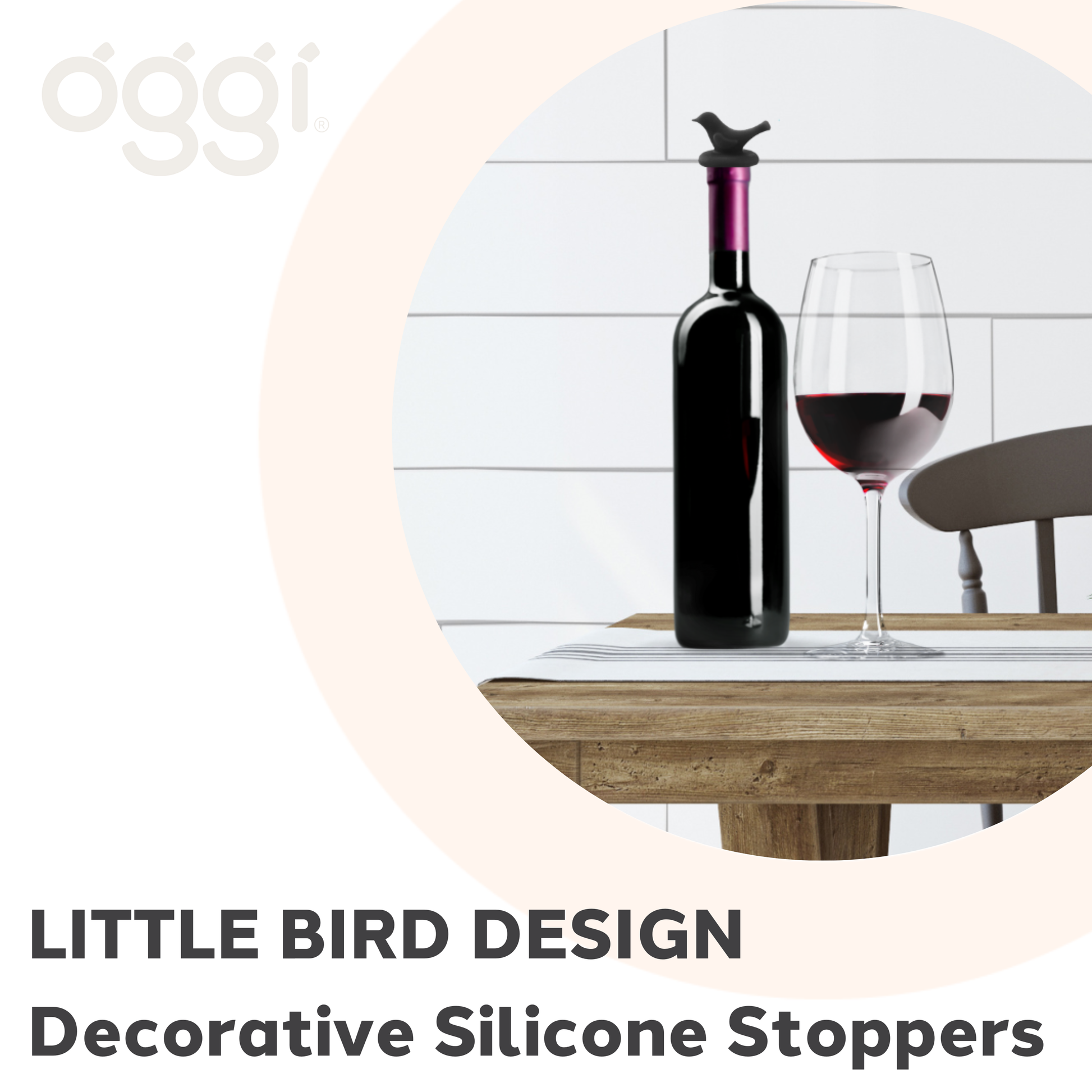 Oggi's Little Bird silicone corks for wine bottles make perfect decorative wine stoppers for the wine lover.