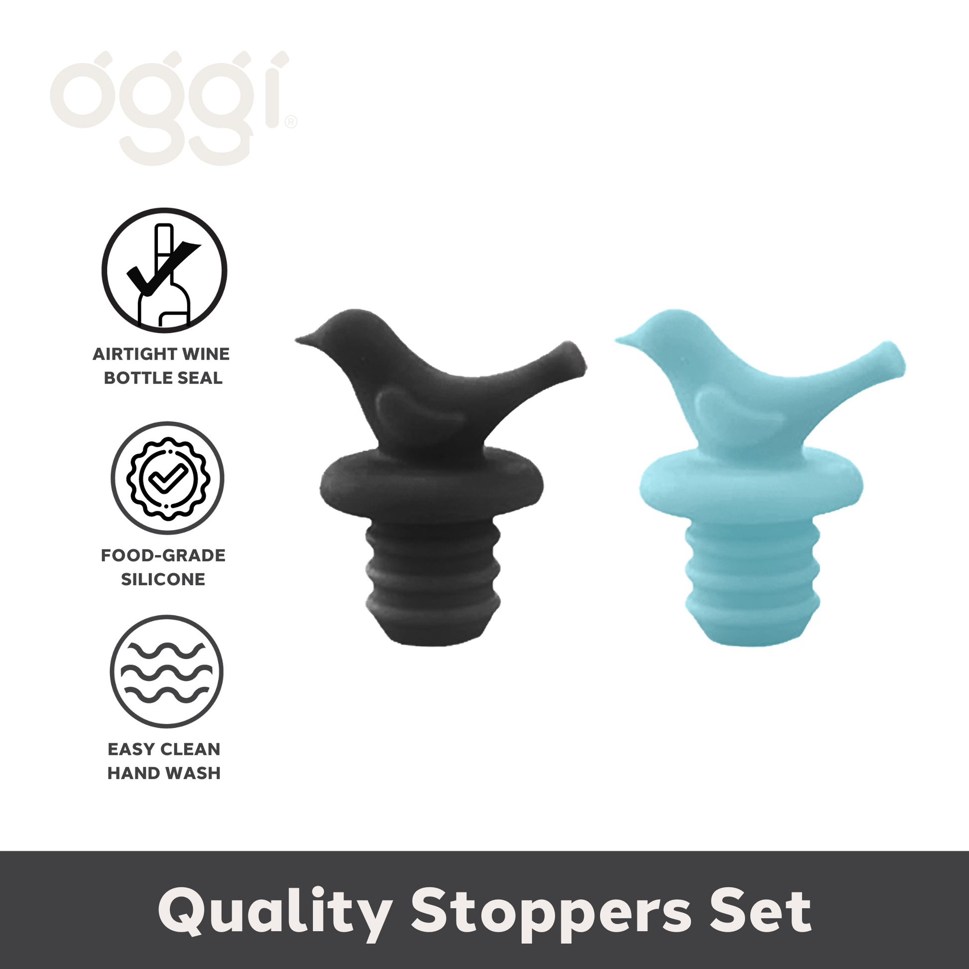 With their clean black and blue coloring, Oggi's silicone wine bottle cork stopper set make an ideal fit to your kitchen and bar décor.