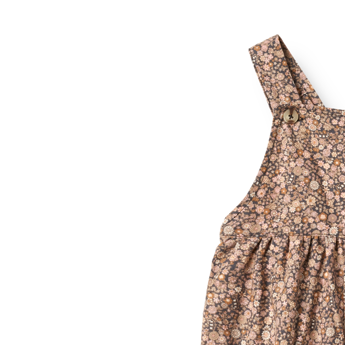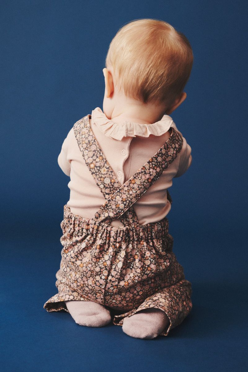 Pink floral overalls that look lovely paired with a sweet bodysuit, or a warm jumper.