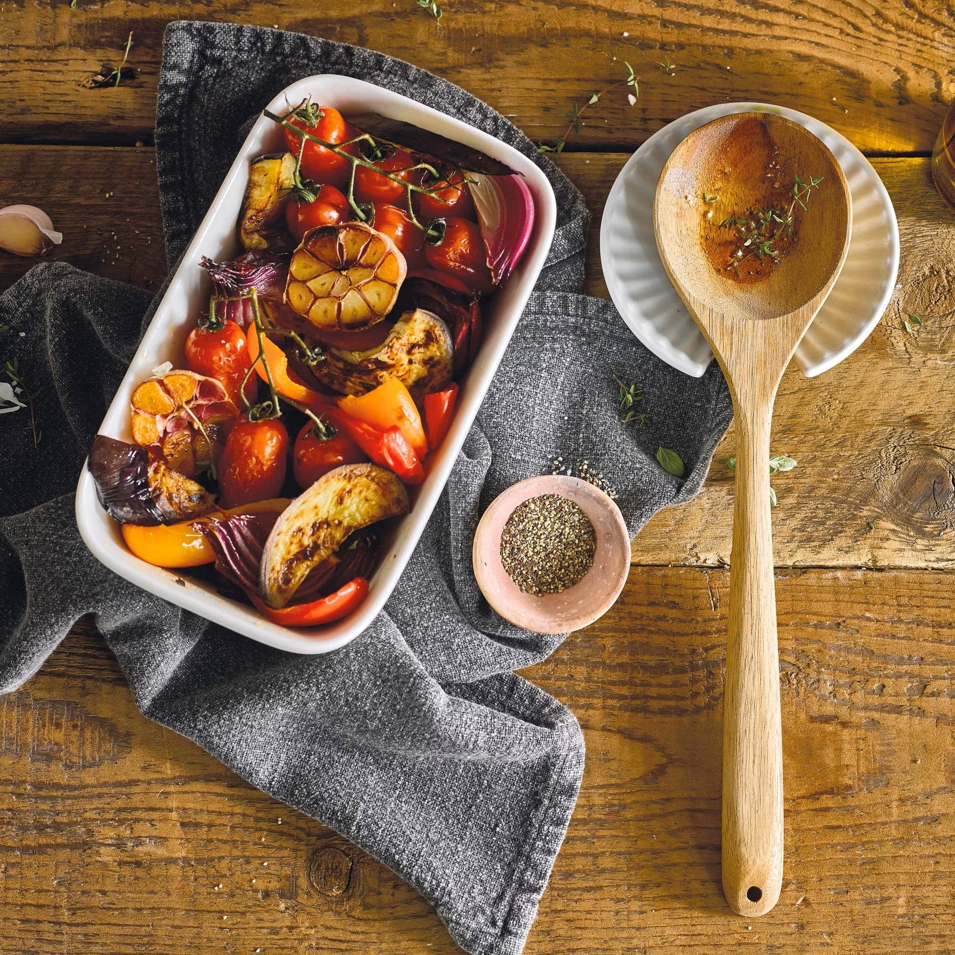 It's the perfect size for serving roasted vegetables or small bakes from the oven to the table.