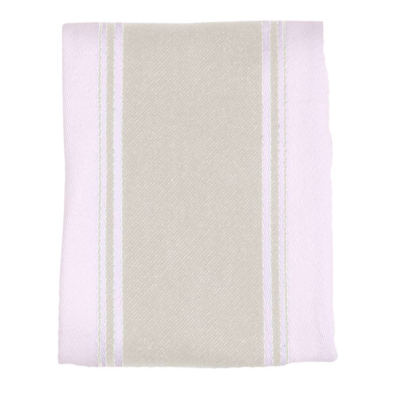 Dry up in style with this traditional striped tea towel with this soothing and neutral stone colour .