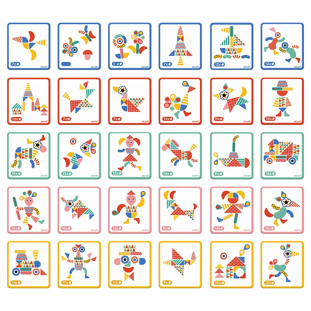 Once the book is opened, the aim is to make the stage the same tangram shape as indicated on the card thanks to the magnets.