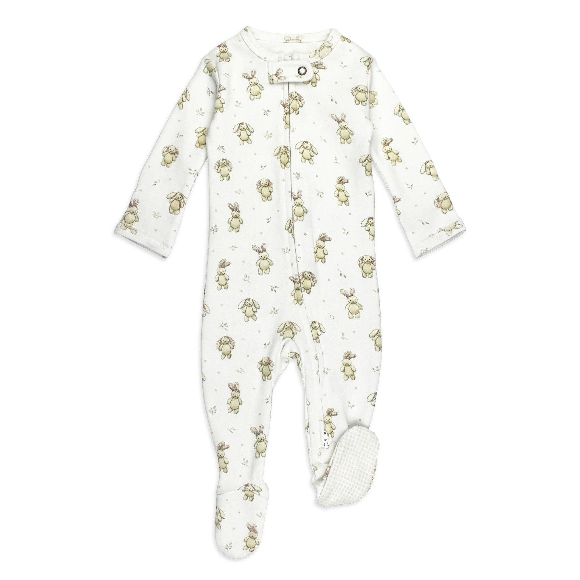 Organic 2-Way Zipper Footie in Bunny Biscuit | L'ovedbaby