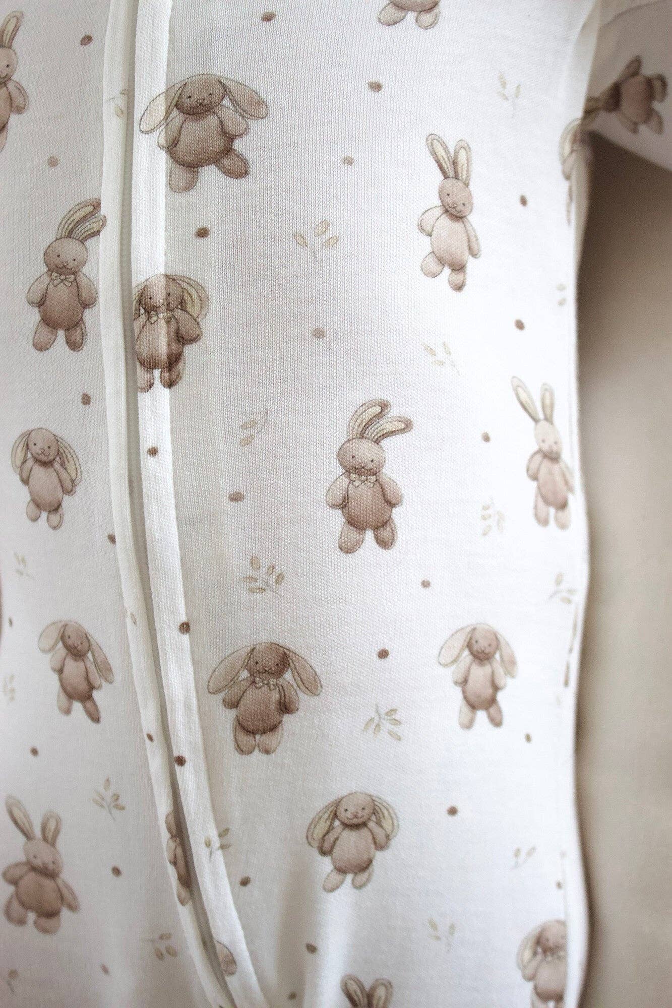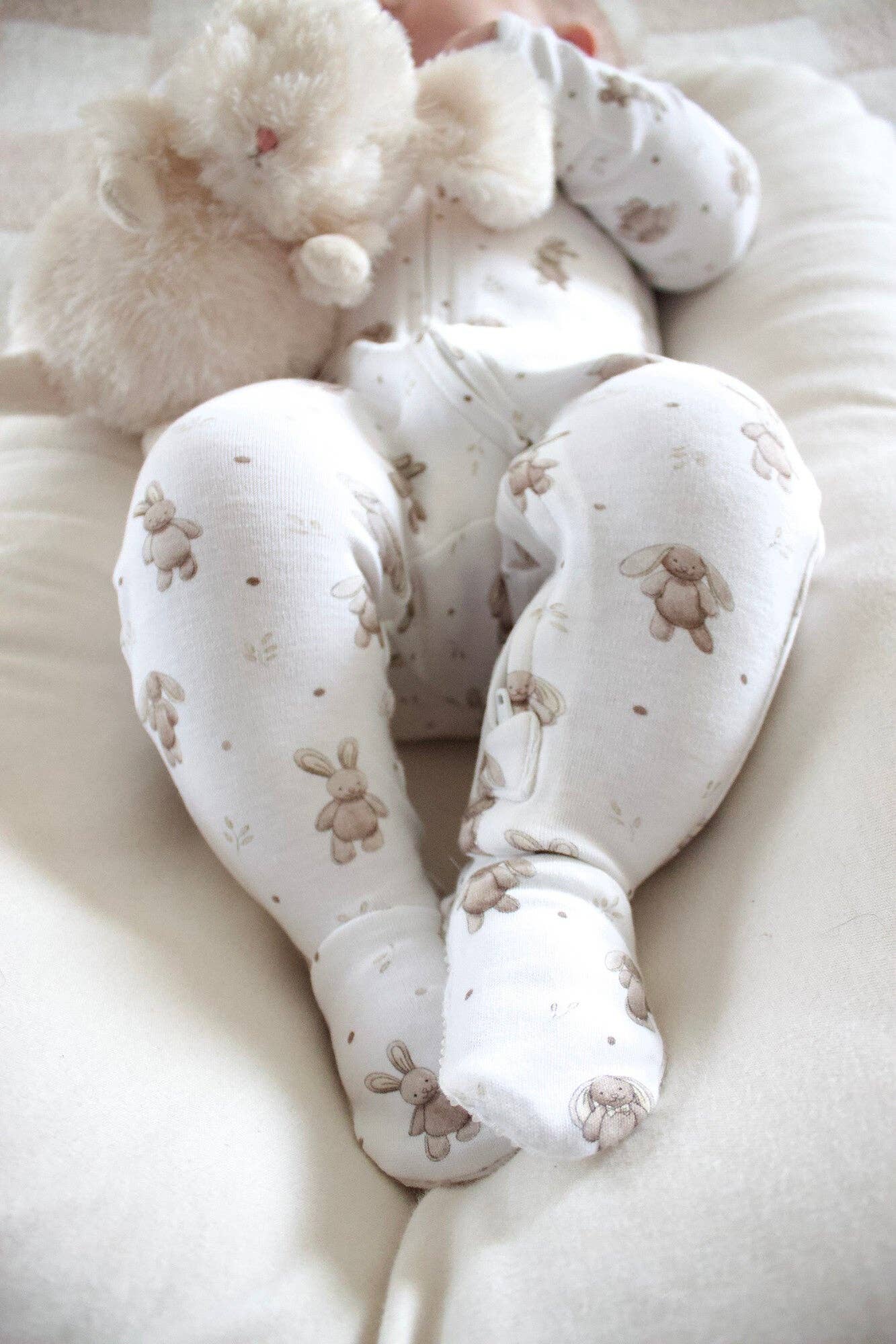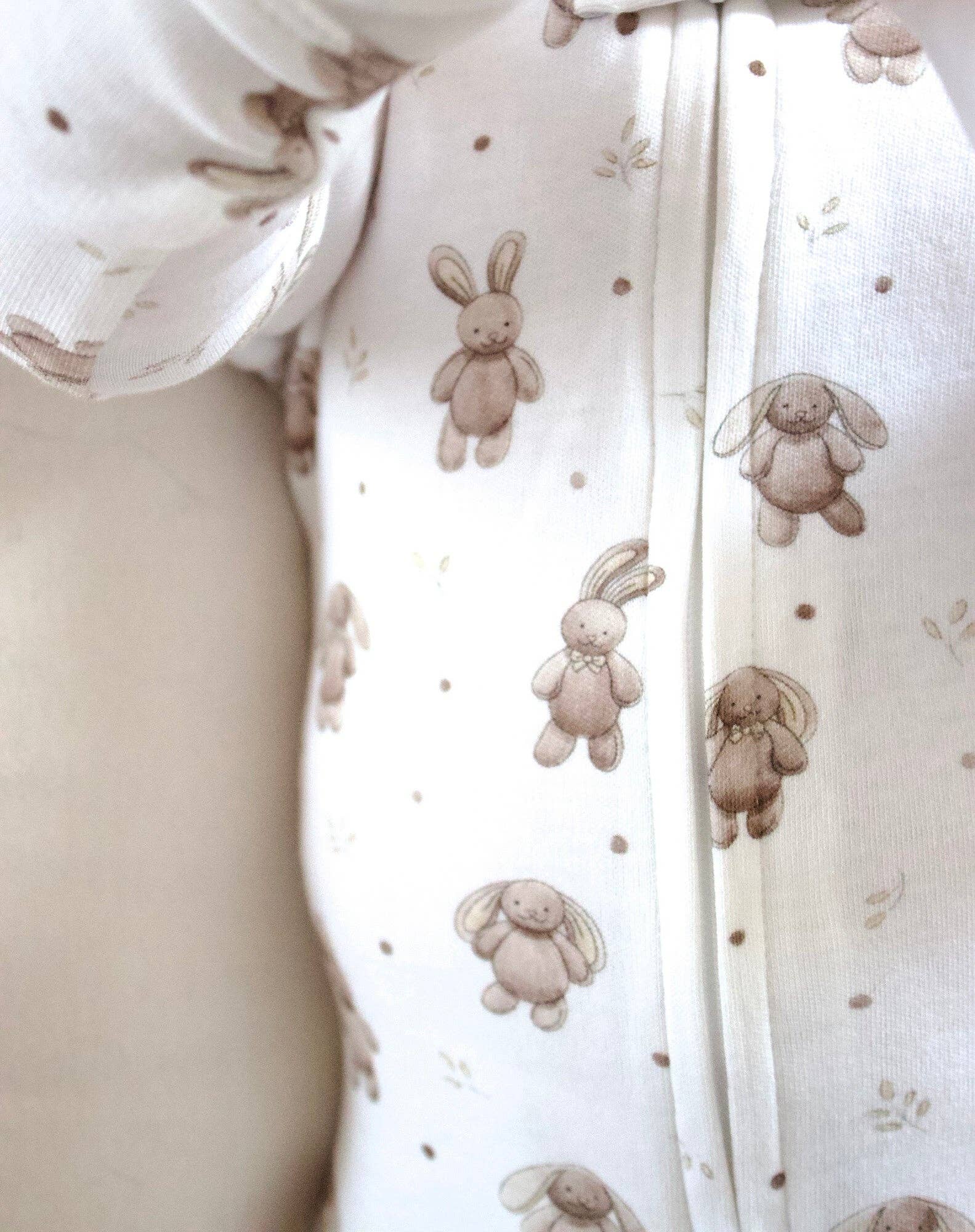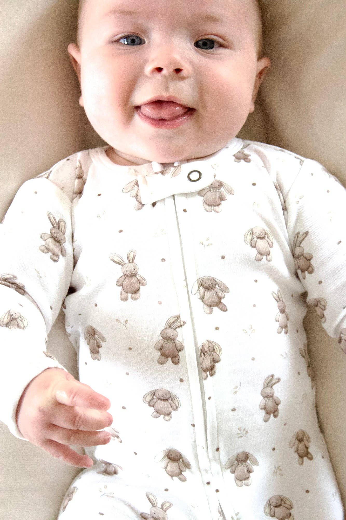 Organic 2-Way Zipper Footie in Bunny Shadow | L'ovedbaby