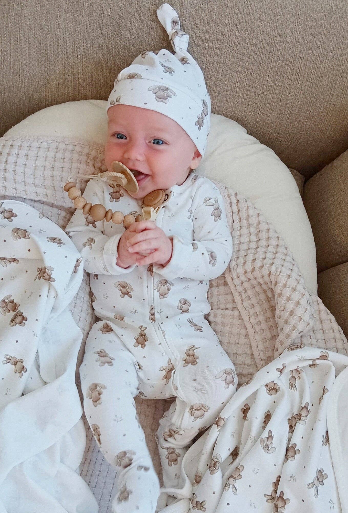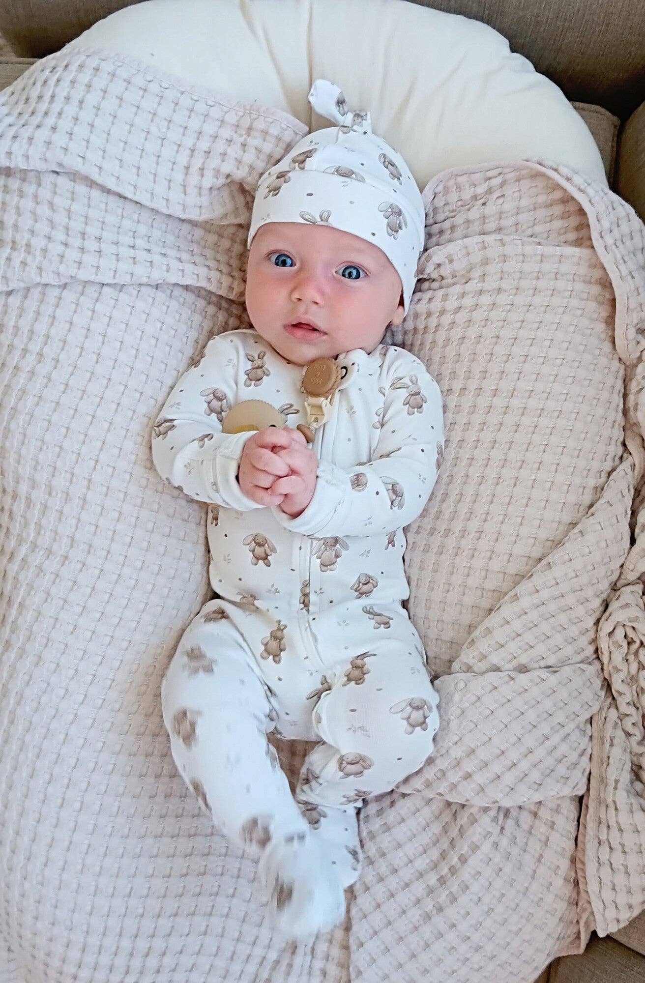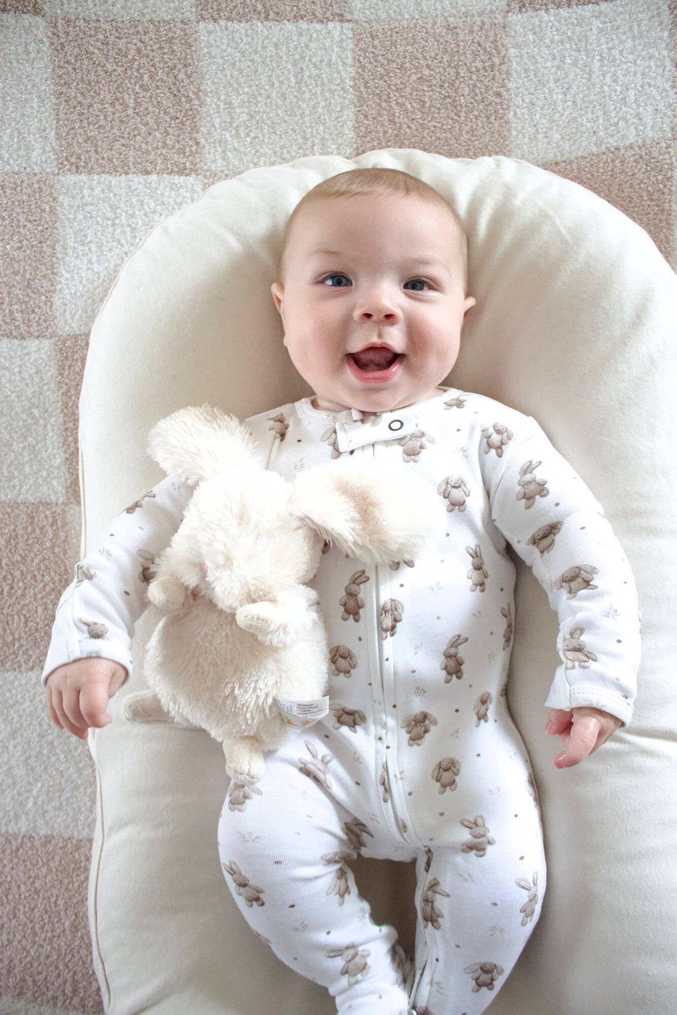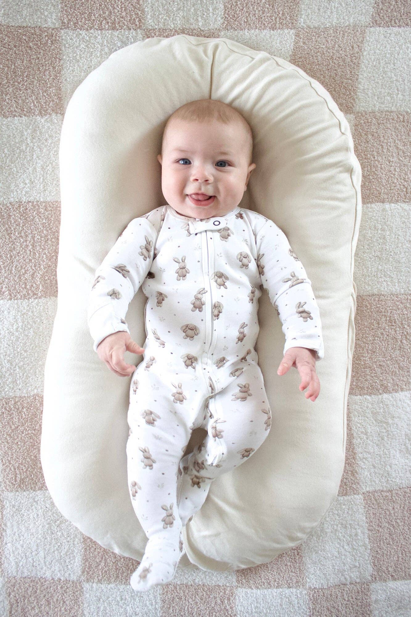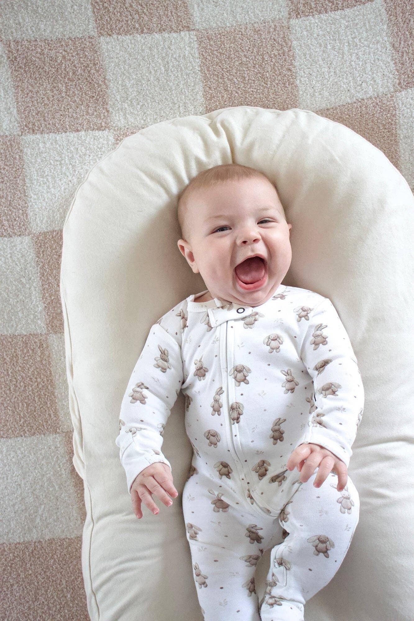 Organic 2-Way Zipper Footie in Bunny Shadow | L'ovedbaby