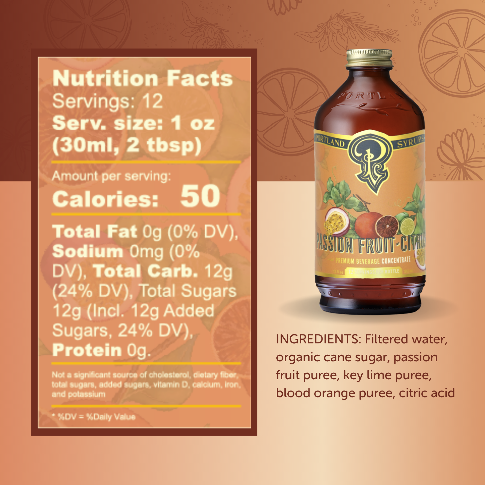Passion Fruit Citrus will add a bright sweetness to just about any cocktail, whether you're working with vodka, gin, bourbon, or tequila, and a splash will add some sunshine to your afternoon sparkling water.